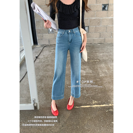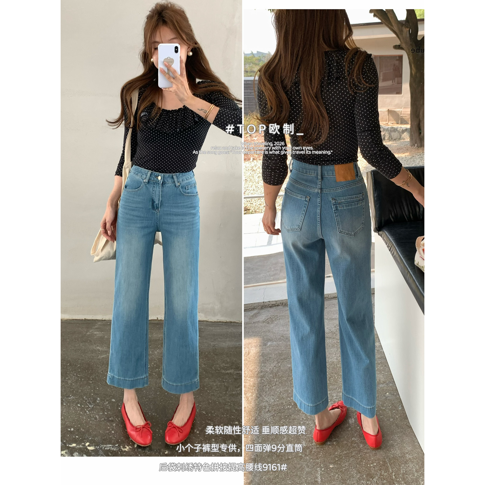 TOP 欧制-感超赞小个子裤型四面弹9分直筒后袋刺绣牛仔裤9161浅兰