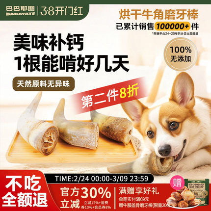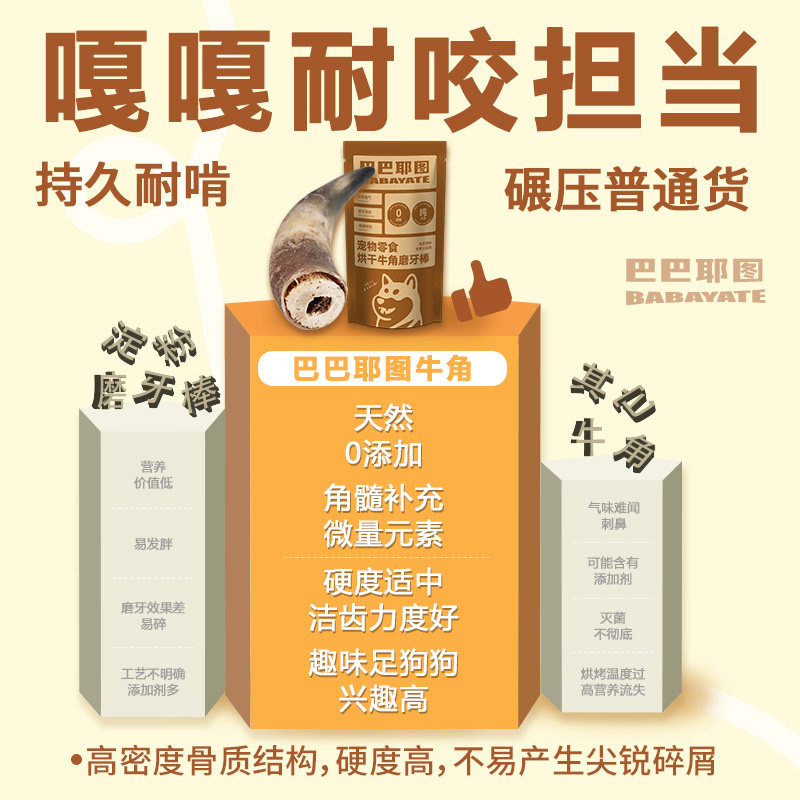巴巴耶图牛角磨牙棒耐磨耐咬洁齿