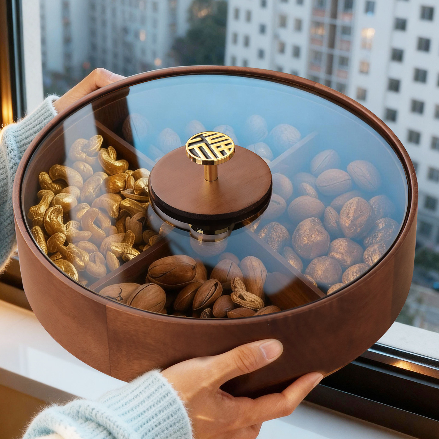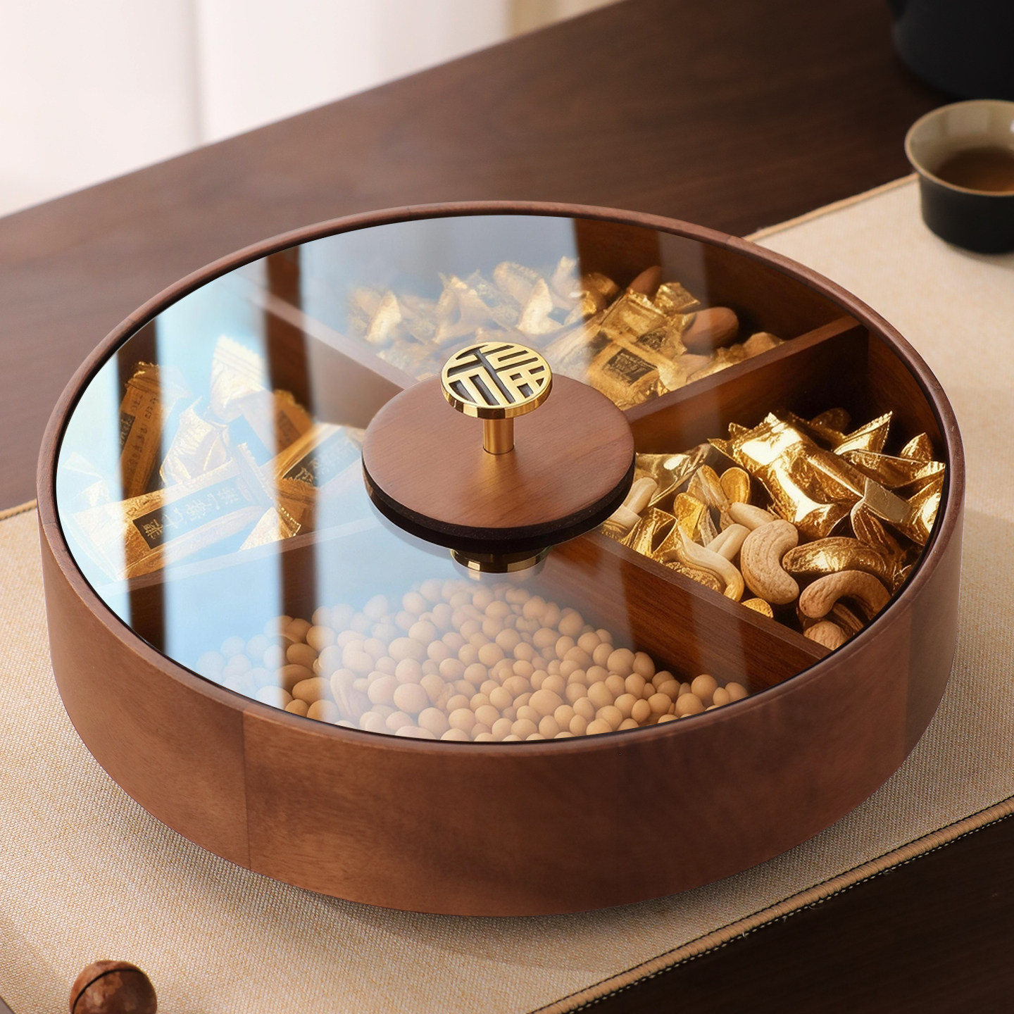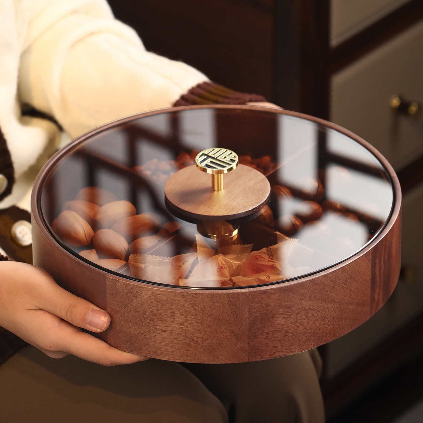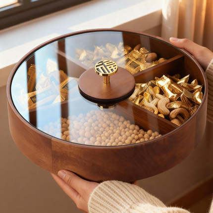 新中式实木圆形分格干果盒