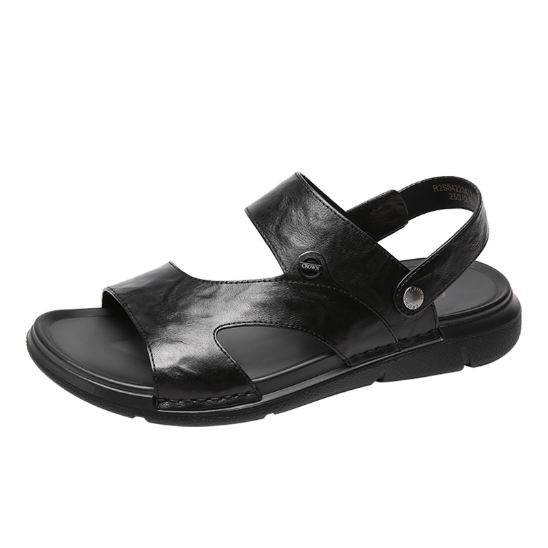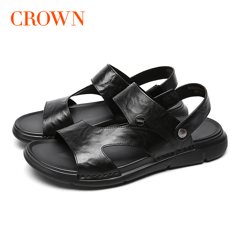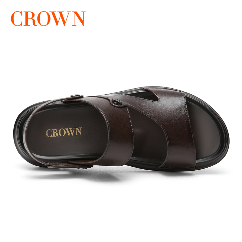CROWN/皇冠夏款牛皮革户外舒适休闲透气沙滩鞋拖鞋两穿皮凉鞋男鞋