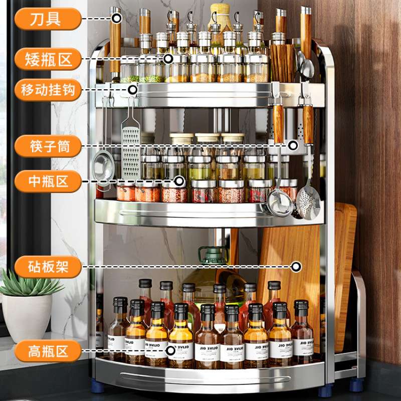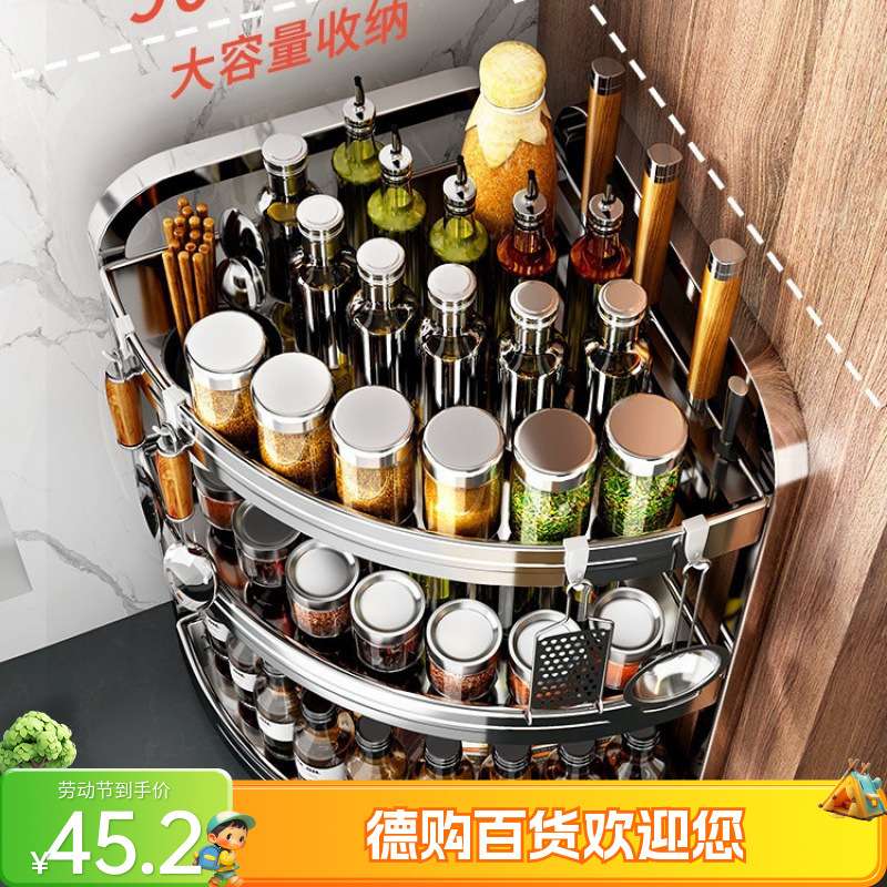 厨房置物架多功能调味品调料架盐调味罐台面三角不锈钢墙角收纳架