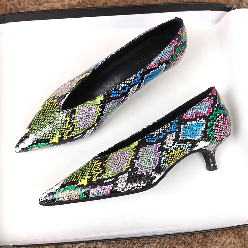 欧洲站女鞋2025春新款浅口猫跟高跟鞋印花奶奶鞋女巫鞋尖头单鞋女
