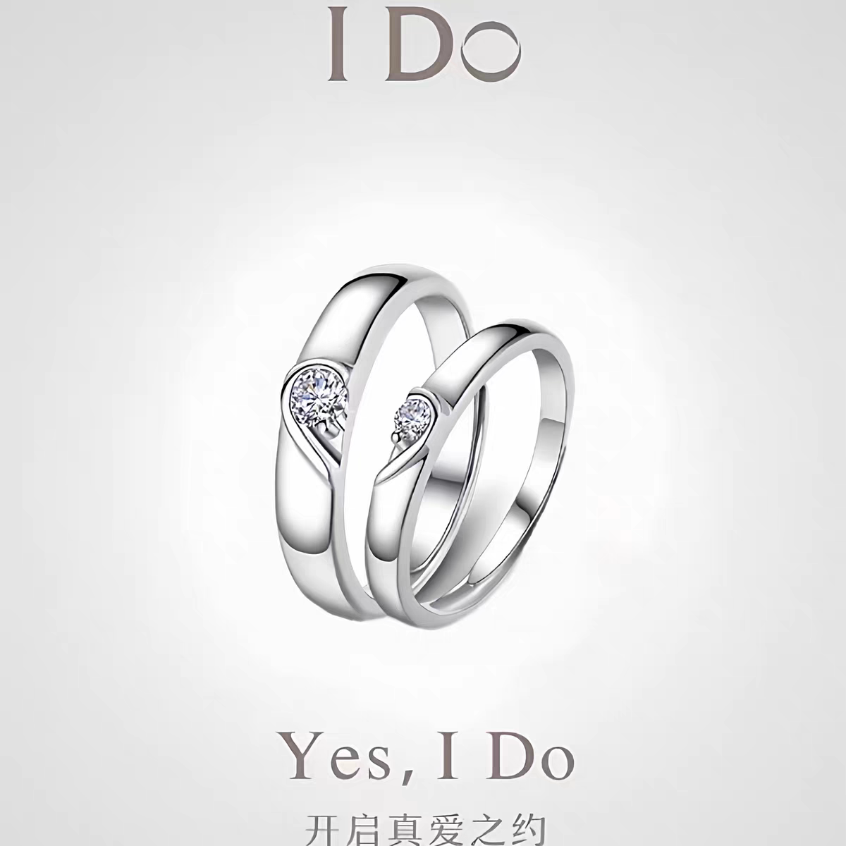 I DO铂金PT950戒指女情侣对戒1克拉白金钻戒求婚结婚婚戒元旦礼物