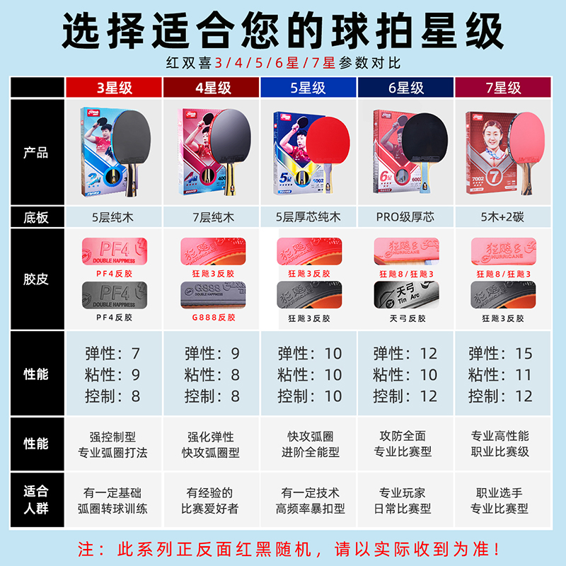 红双喜三星乒乓球拍初学专业狂飙5星学生横拍兵乓球拍官方旗舰店