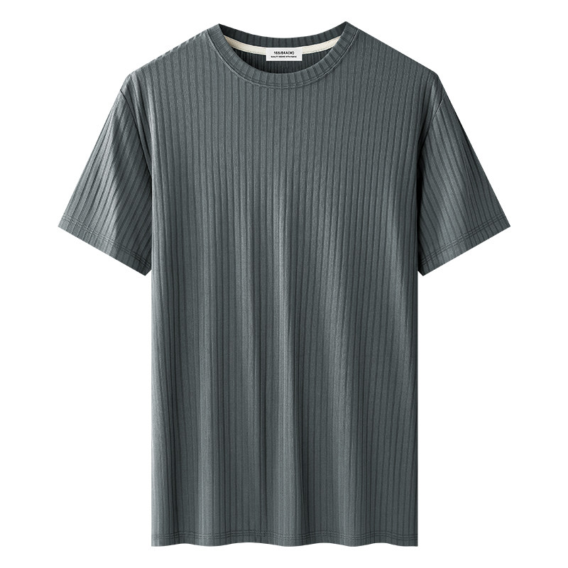 猫人竖条纹提花冰丝短袖t恤男士