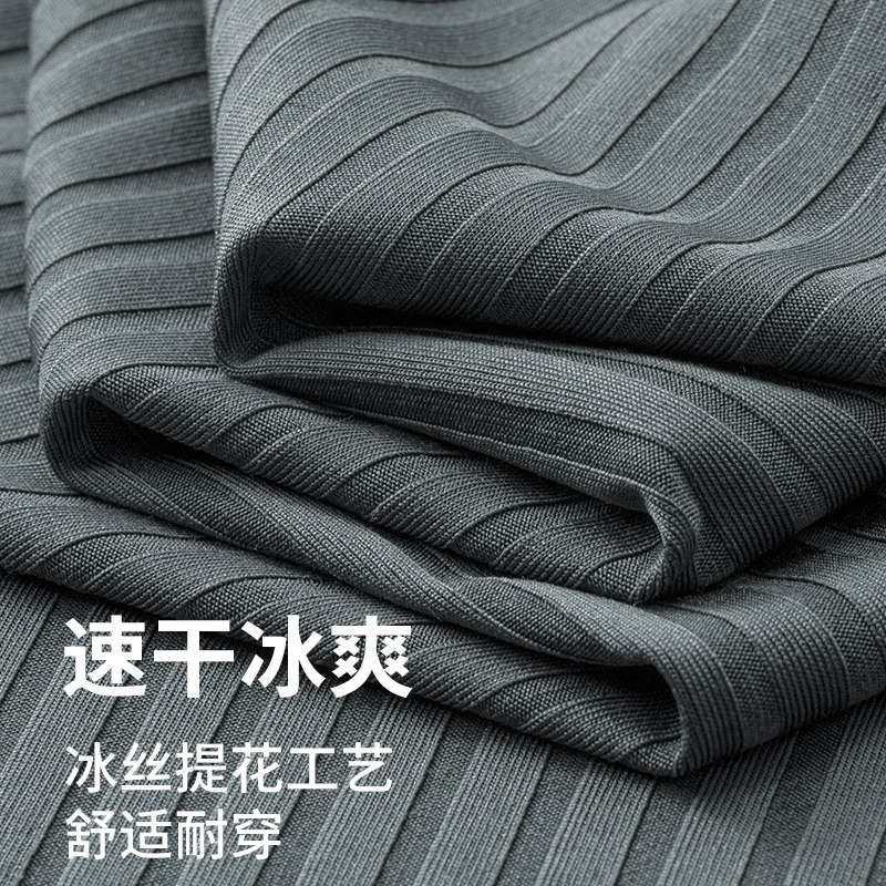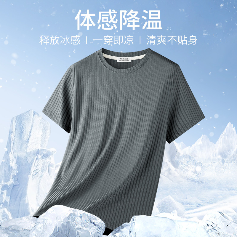 猫人竖条纹提花冰丝短袖t恤男士2026夏季新款速干半袖体恤上衣薄