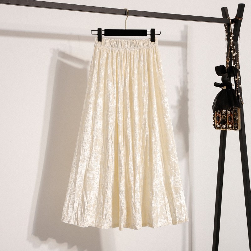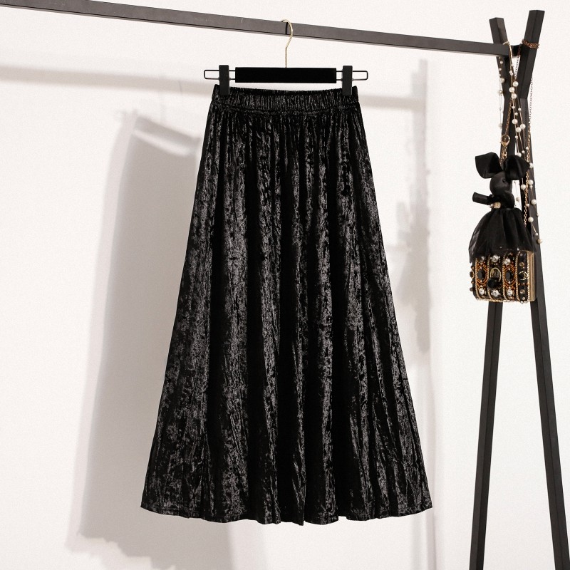 秋冬女装批新款发气质高腰大码显瘦A字裙中长款褶皱金丝绒半身裙