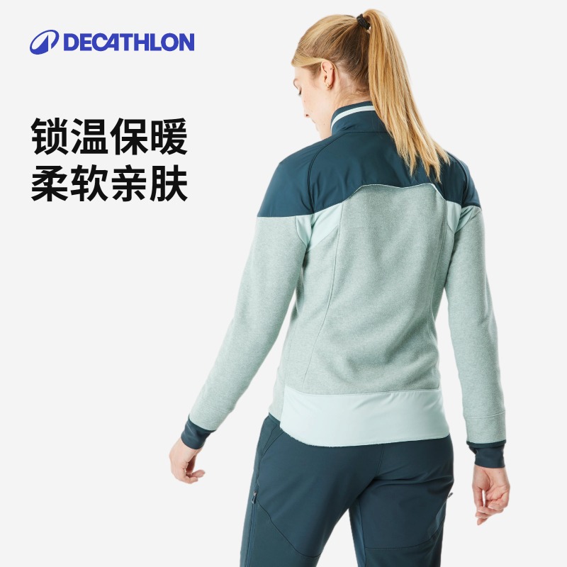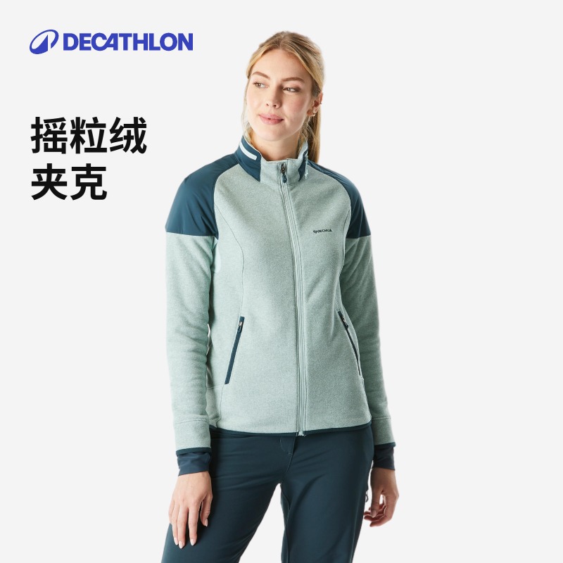 迪卡侬新款秋冬摇粒绒外套女山地徒步绒衣保暖夹克防风防泼水ODF