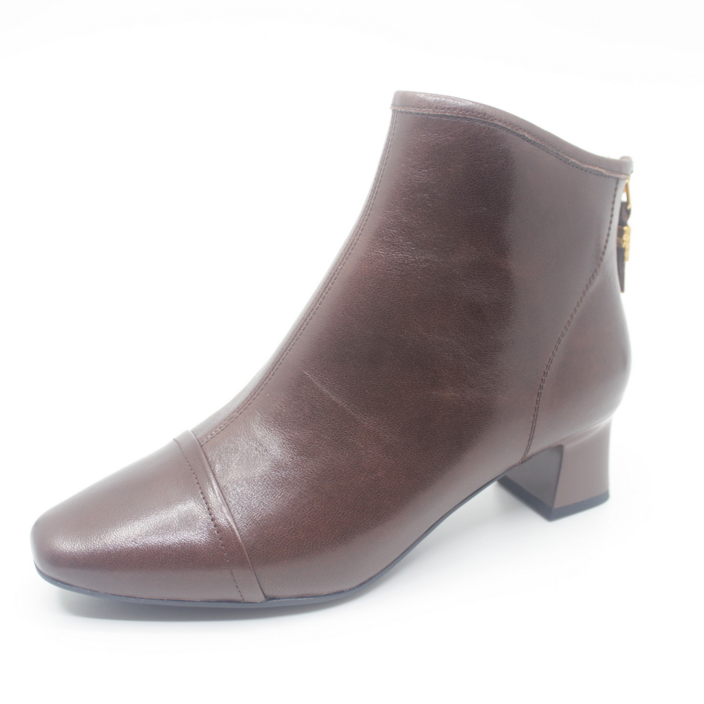 正品富贵鸟短靴2025冬新款后拉链绒里羊皮粗跟女靴子G576838KC-9