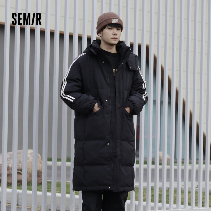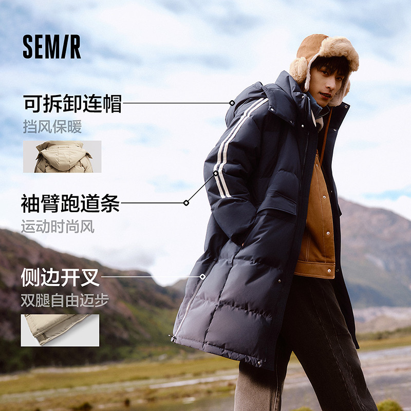 森马长款羽绒服男2025冬季三防可拆卸连帽撞色运动风情侣外套厚款