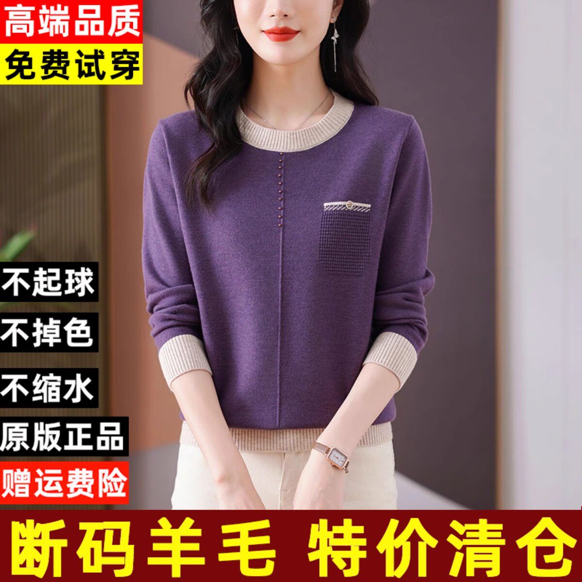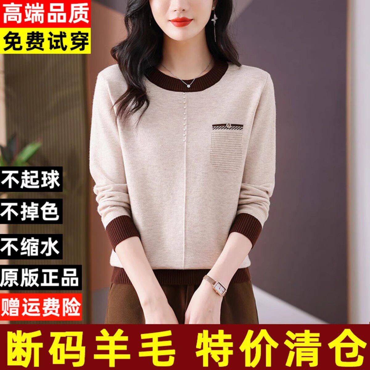 鄂尔多斯市羊毛衫宽松女士秋冬季新款拼色圆领针织洋气毛衣打底衫