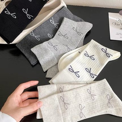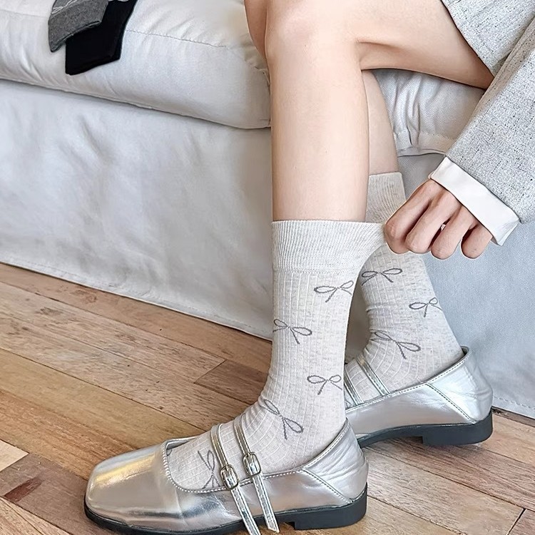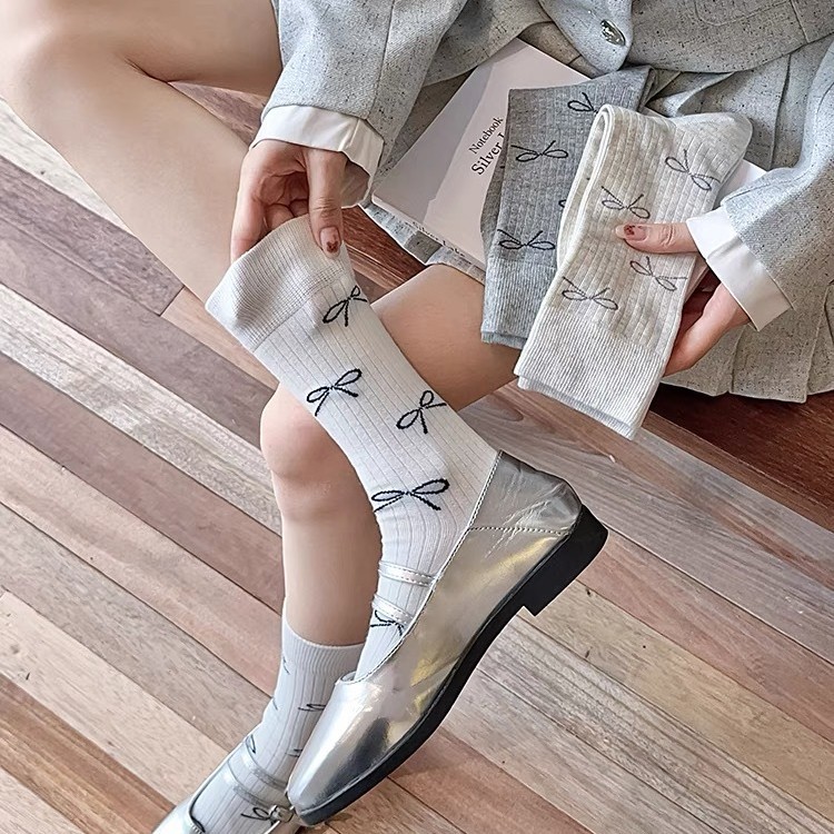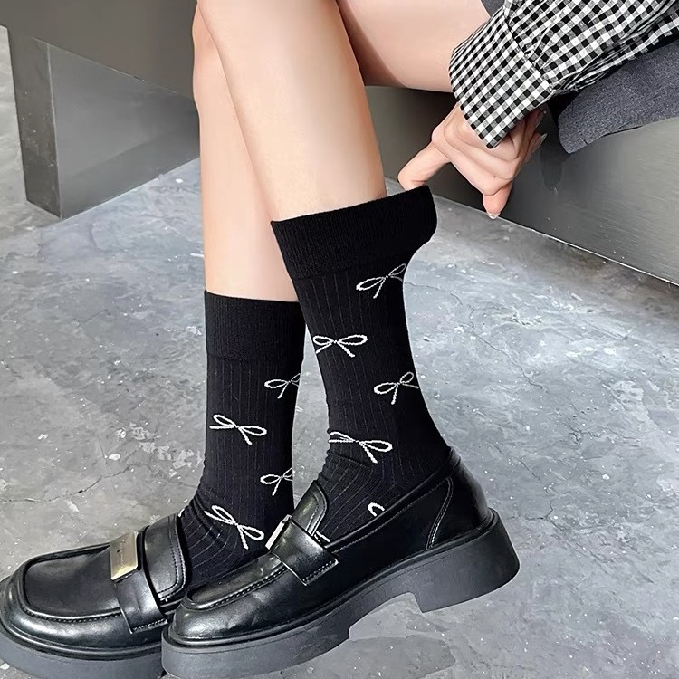 袜子女中筒女袜ins潮纯棉春秋款日系可爱蝴蝶结波点中筒秋季薄款