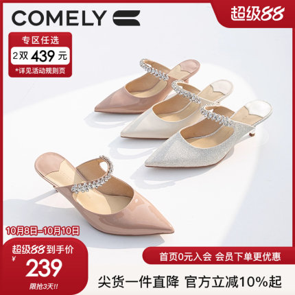 康莉comely包头拖鞋女羊皮2023年春夏新款细跟水钻百搭凉鞋高跟鞋