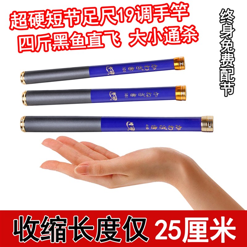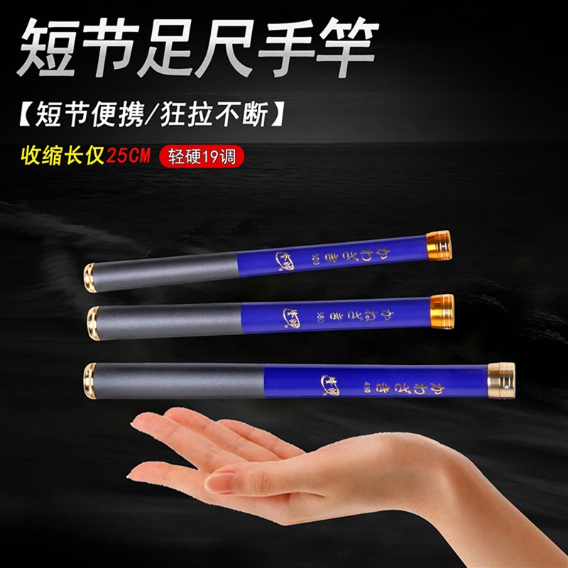 袖珍超短节钓鱼竿25cm碳素溪流竿超轻硬便L携迷你19调手竿套装收
