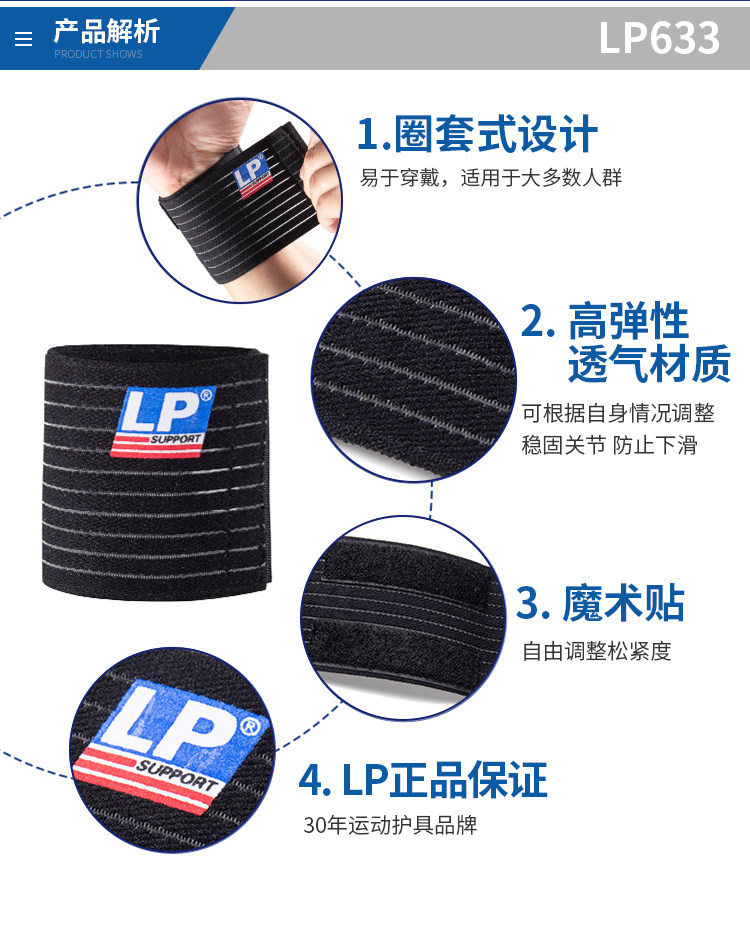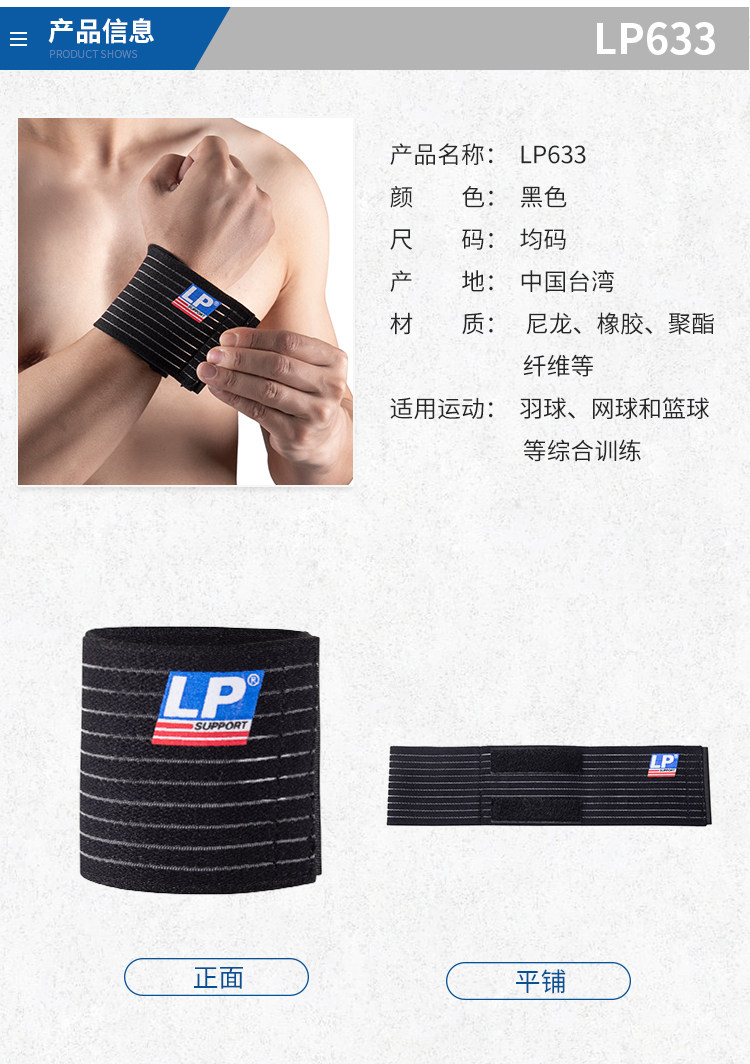 LP护腕网球排球健身运动护具LP633男女弹性绷带薄款加压卧推护腕