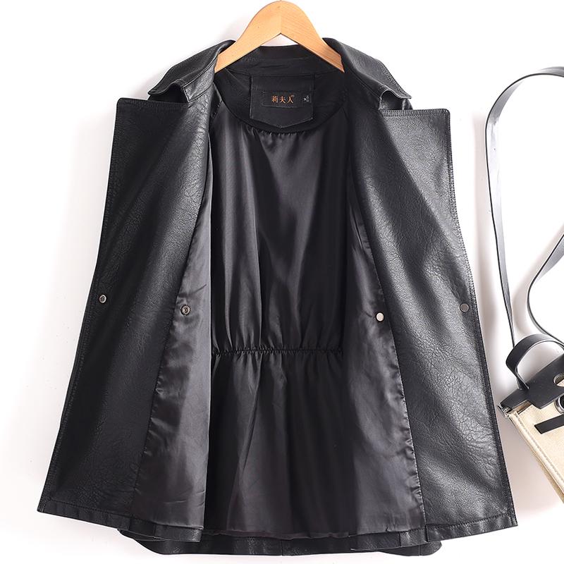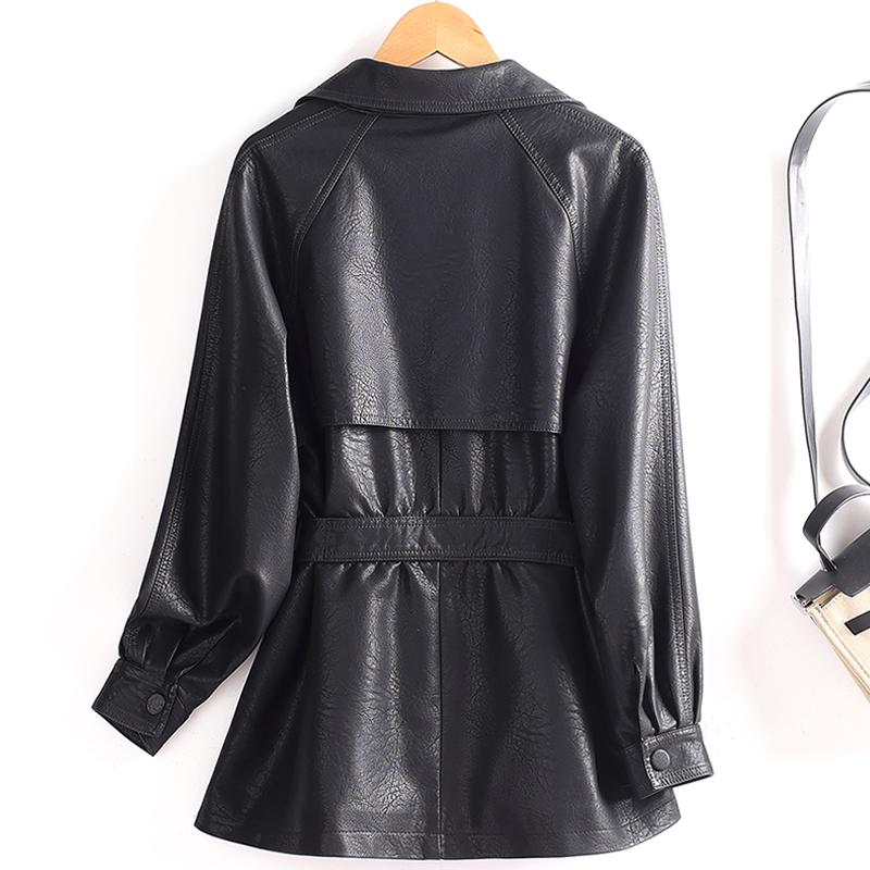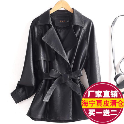 海宁真皮短款系带收腰皮风衣外套