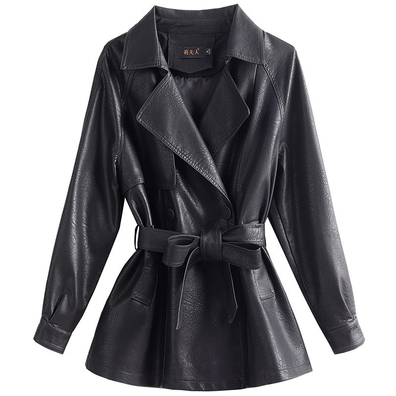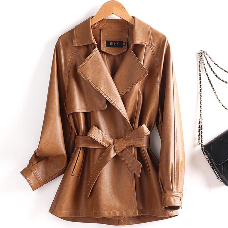 海宁真皮皮衣女士短款韩版系带收腰皮风衣宽松显瘦皮夹克休闲外套