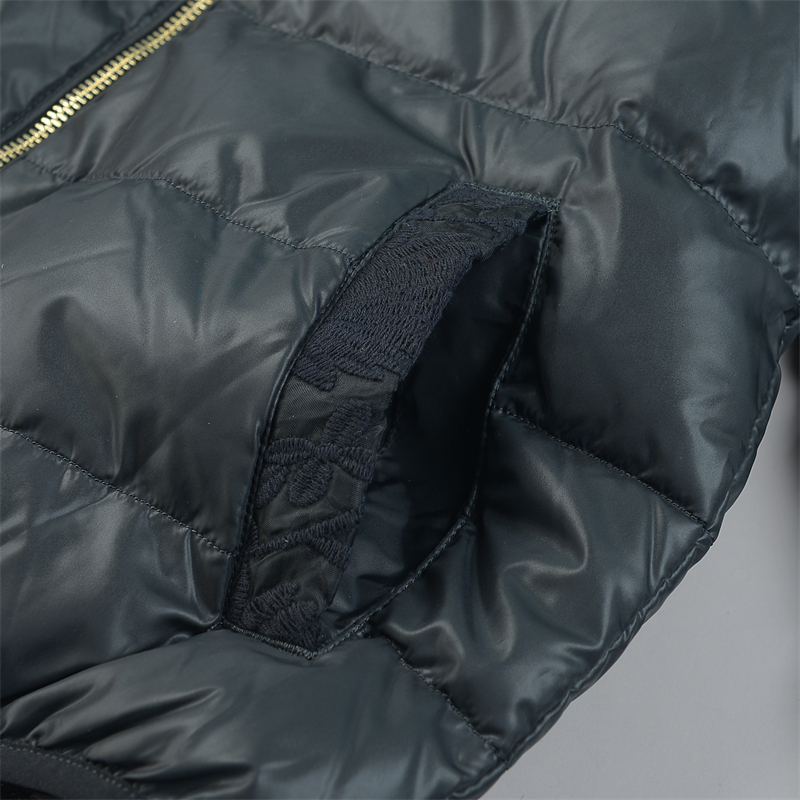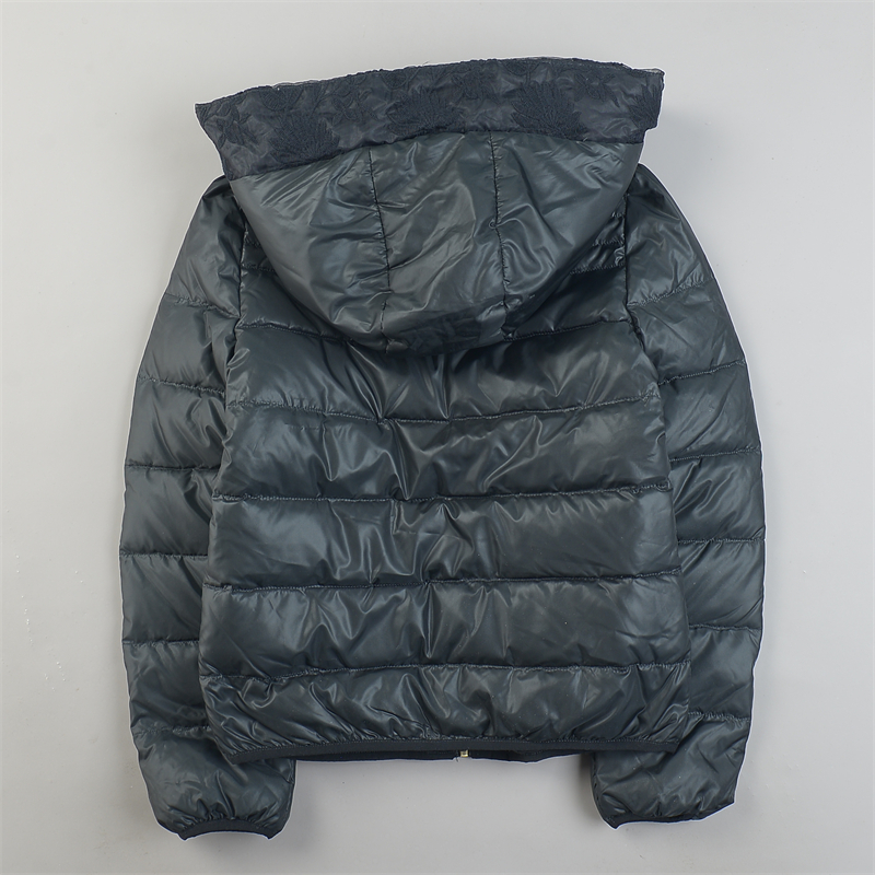 潮牌女装连帽羽绒服11.4L83825刺绣蕾丝边秋冬保暖灰鸭绒夹克外套