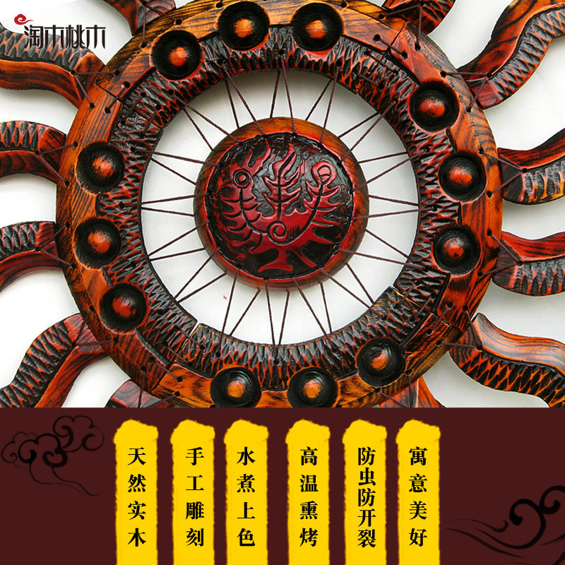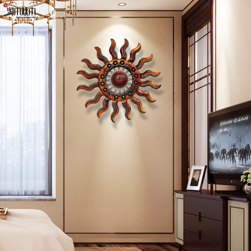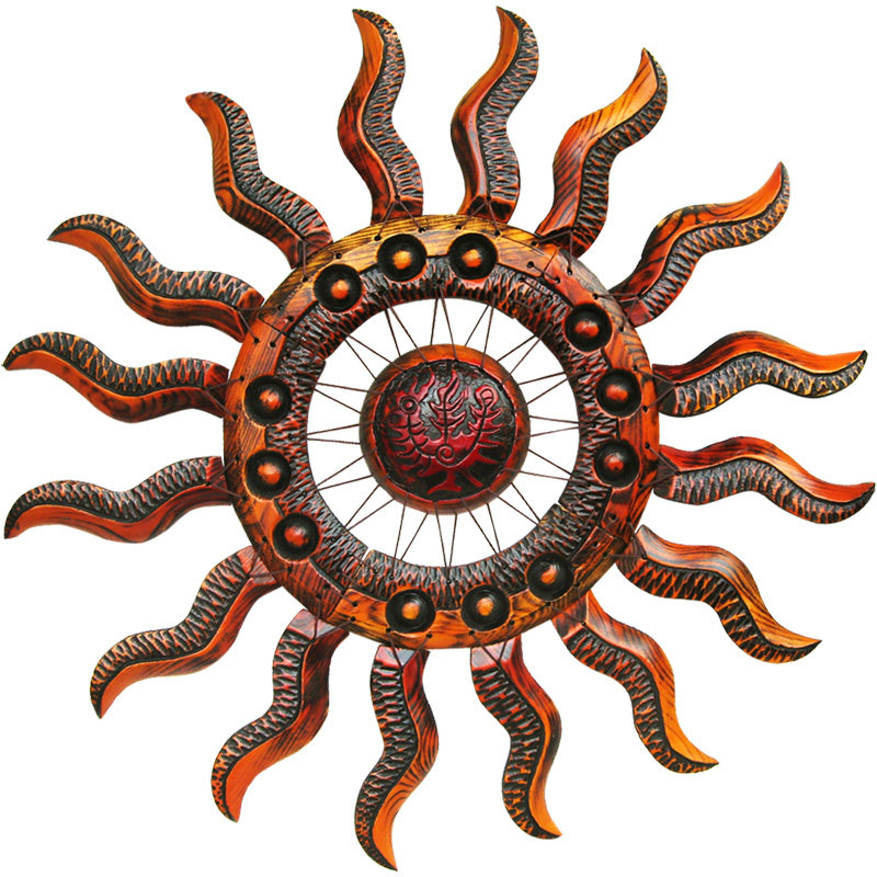 壁饰墙饰欧式客厅墙上装饰品创意立体木挂饰太阳壁挂复古轻奢挂件