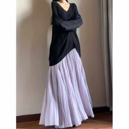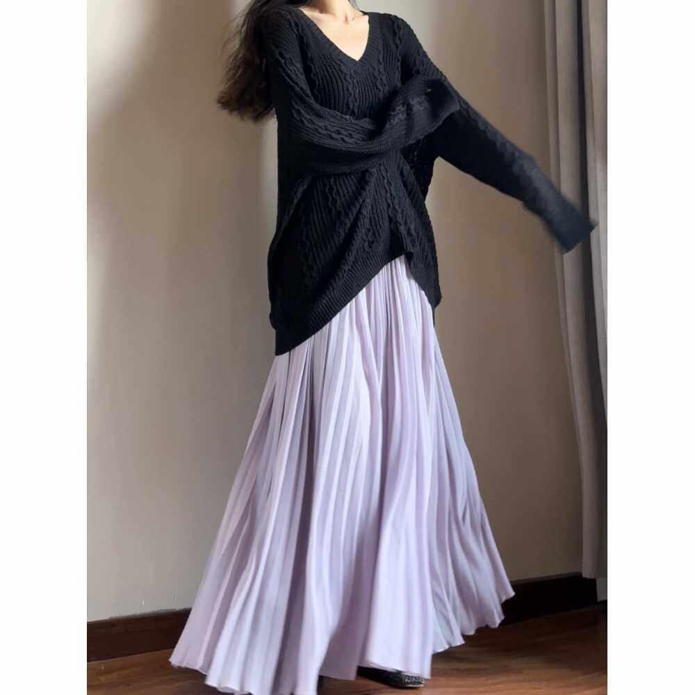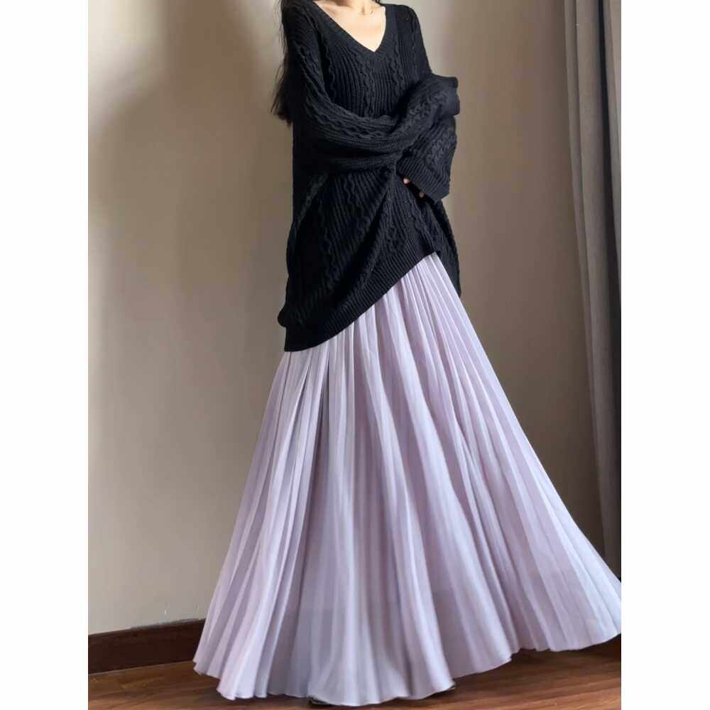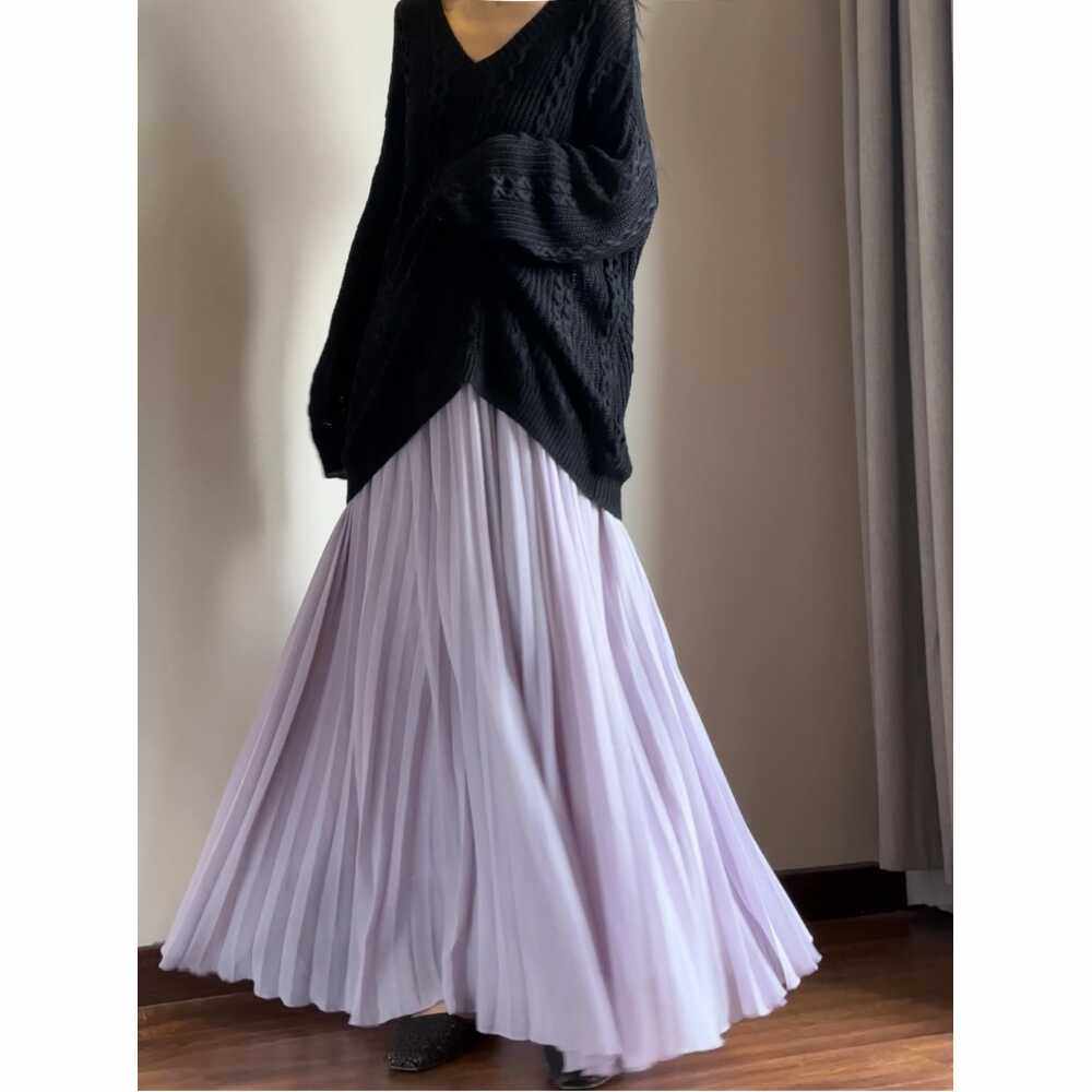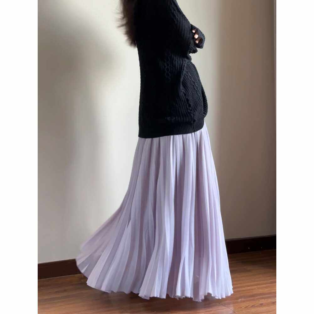读衣术香芋紫百褶裙 雪纺垂坠感高端半身裙 雪纺长裙到脚踝百叶裙