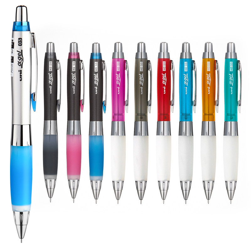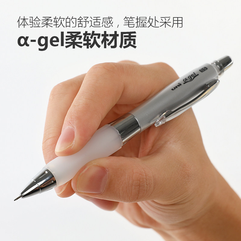 日本uni三菱铅笔自动铅笔软握胶α-gel摇摇出铅芯M5-617/618GG可爱糖果色儿童低重心0.5硅胶活动铅笔