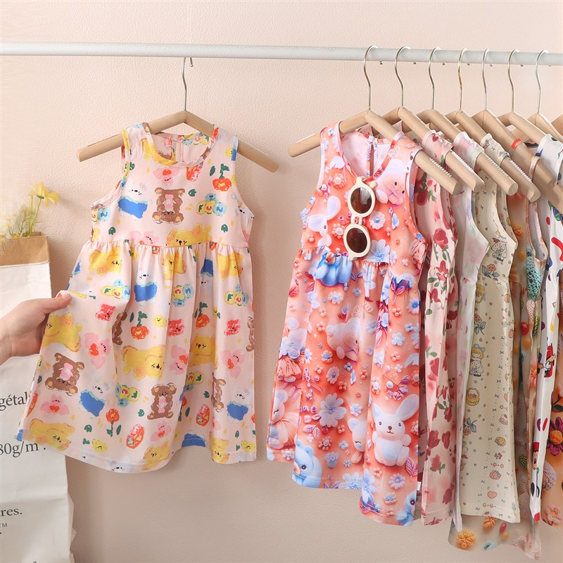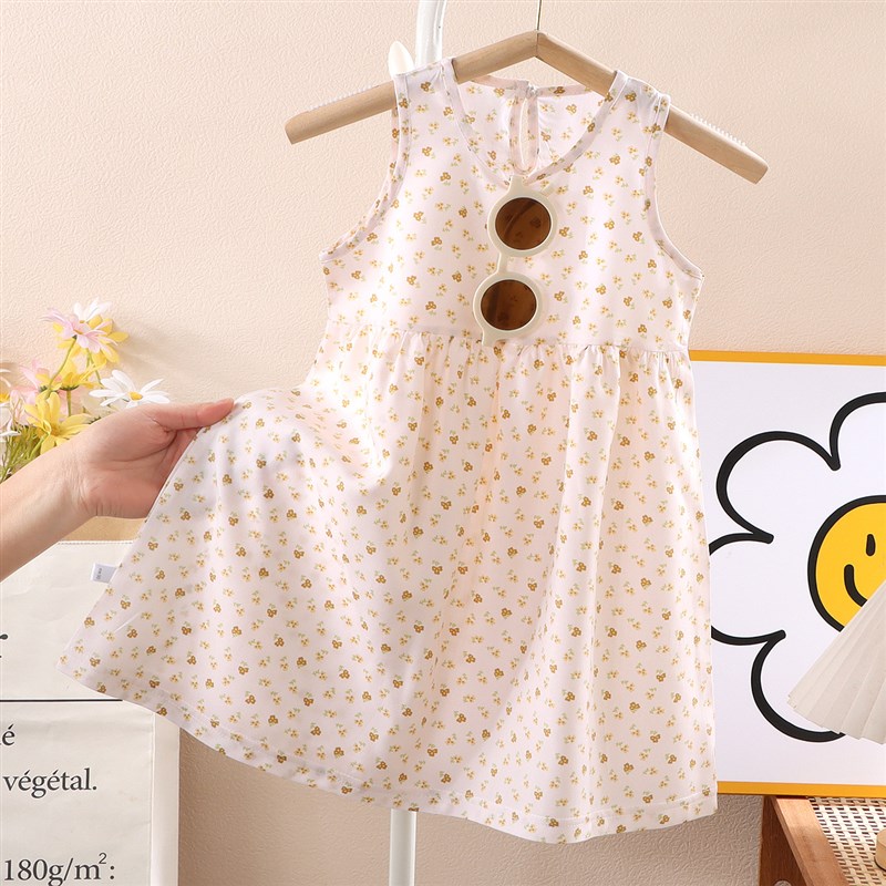女童洋气a碎花连衣裙夏季女孩无袖背心裙公主裙薄款宝宝棉绸睡裙