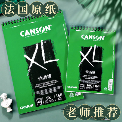法国康颂XL素描本8K速写本8开素描纸16K马克笔专用绘画本彩铅细纹美术水彩本手绘画纸美术生学生用空白画画本