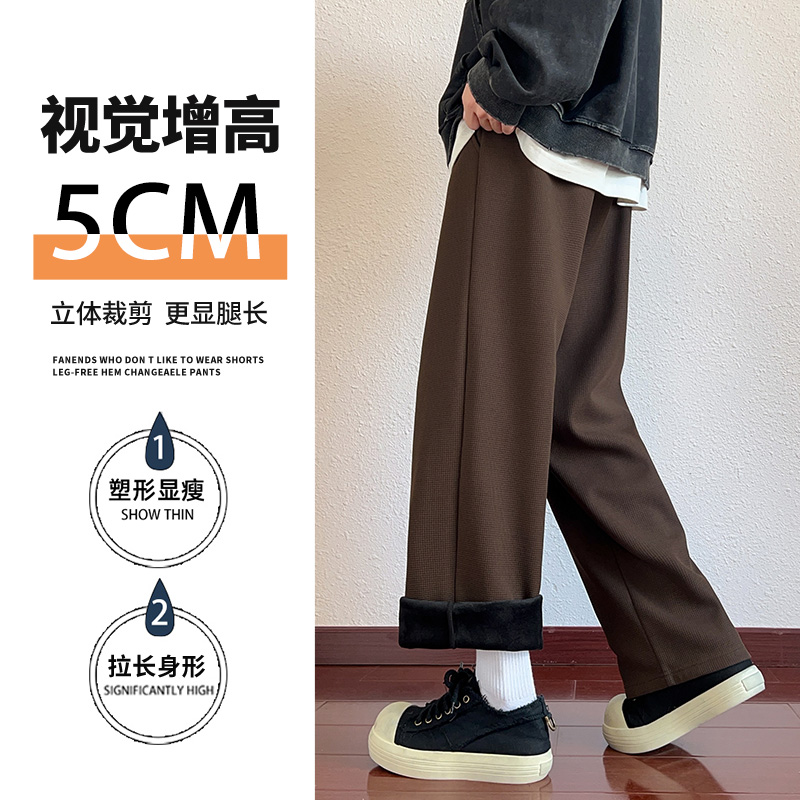 真维斯华夫格加绒男裤秋冬阔腿裤