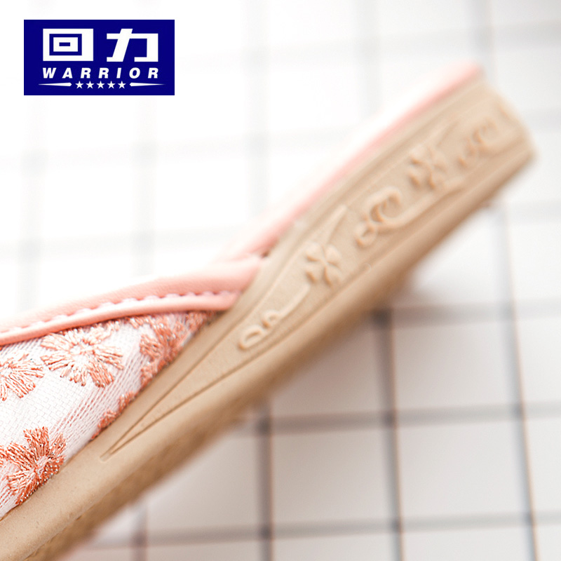 回力包头蕾丝女士凉拖鞋家居室内防滑地板居家亚麻拖鞋女家用夏天