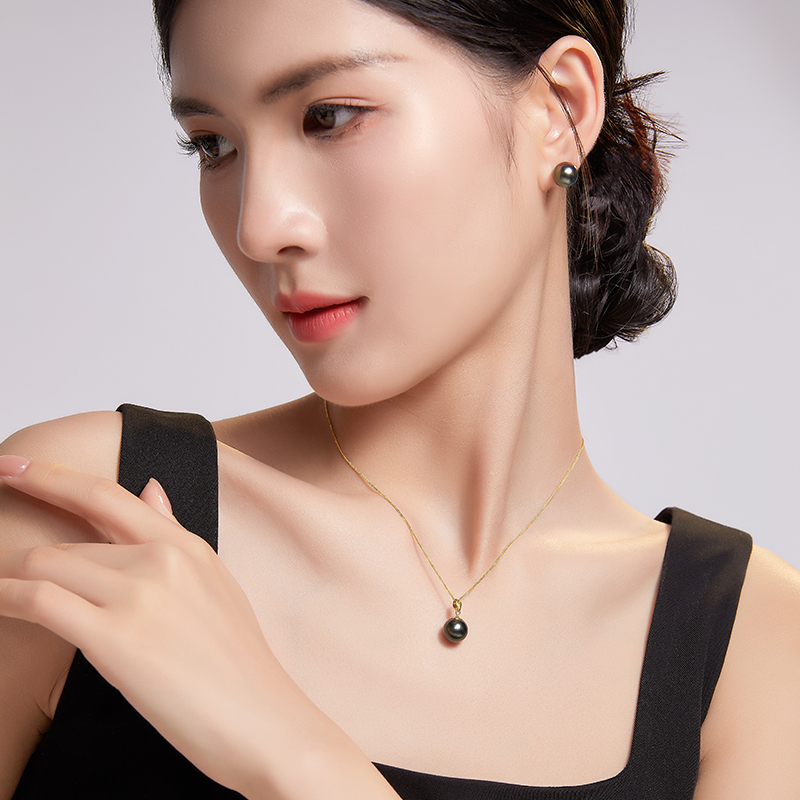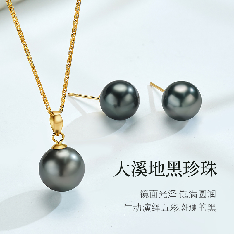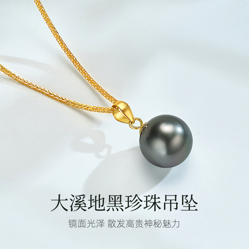 奢珠大溪地海水黑珍珠吊坠项链锁骨链18K金扣官方旗舰店正品