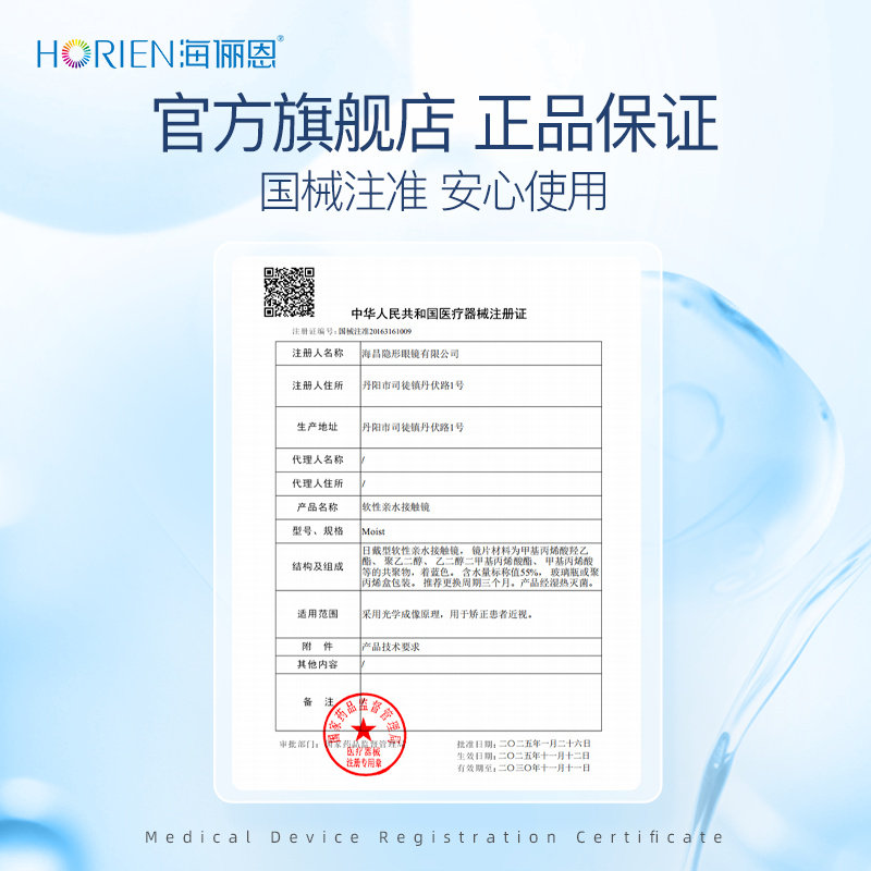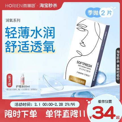 【淘宝秒杀】海俪恩隐形眼镜季抛2片润氧近视透明镜片旗舰店正品