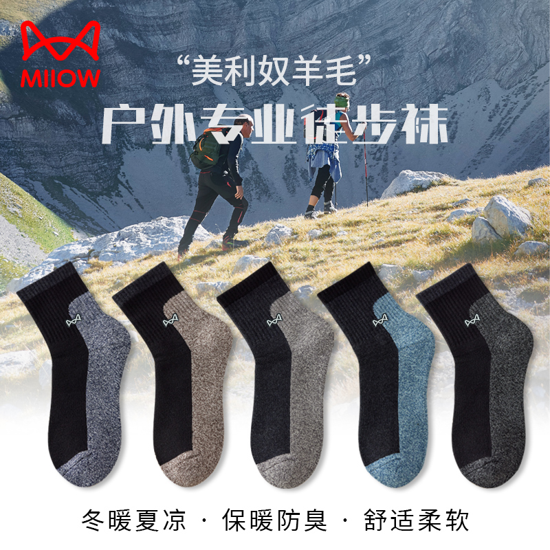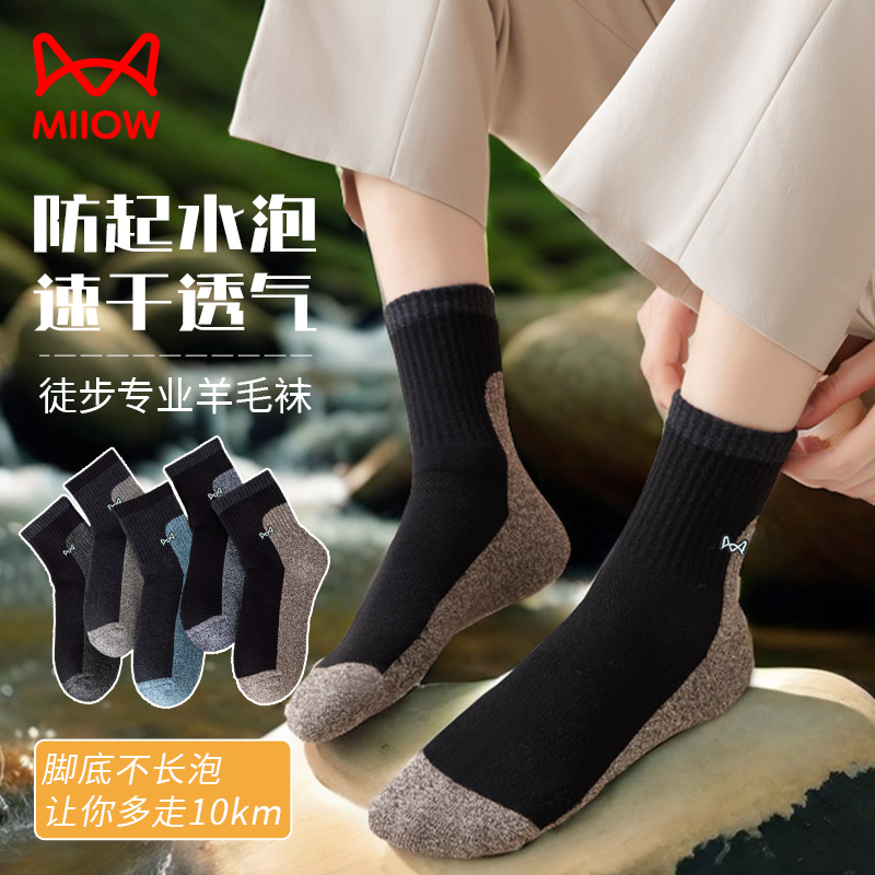 猫人厚款羊毛袜子男户外徒步登山毛圈底透气防臭减震吸汗厚袜男士