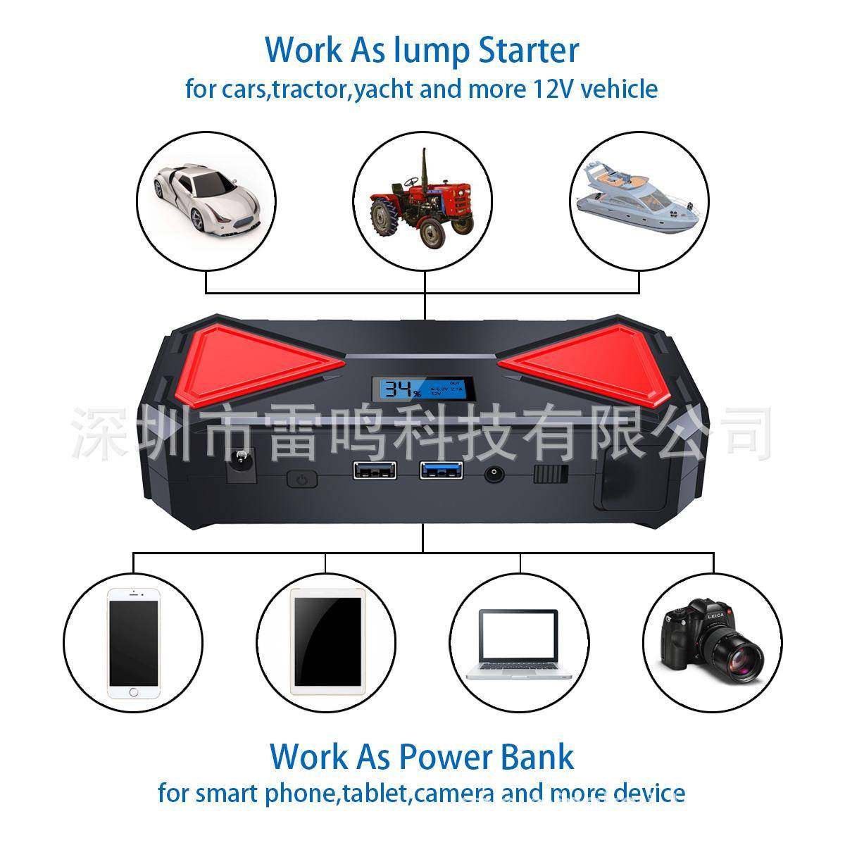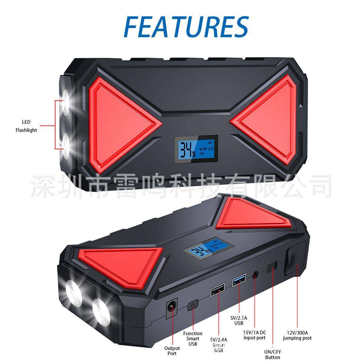 12V大容量防火版车载应急启动电源支持QC.30快充功能超大容量