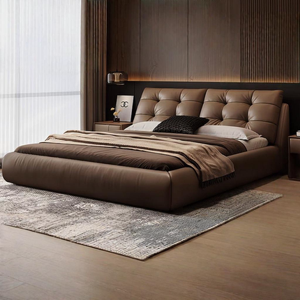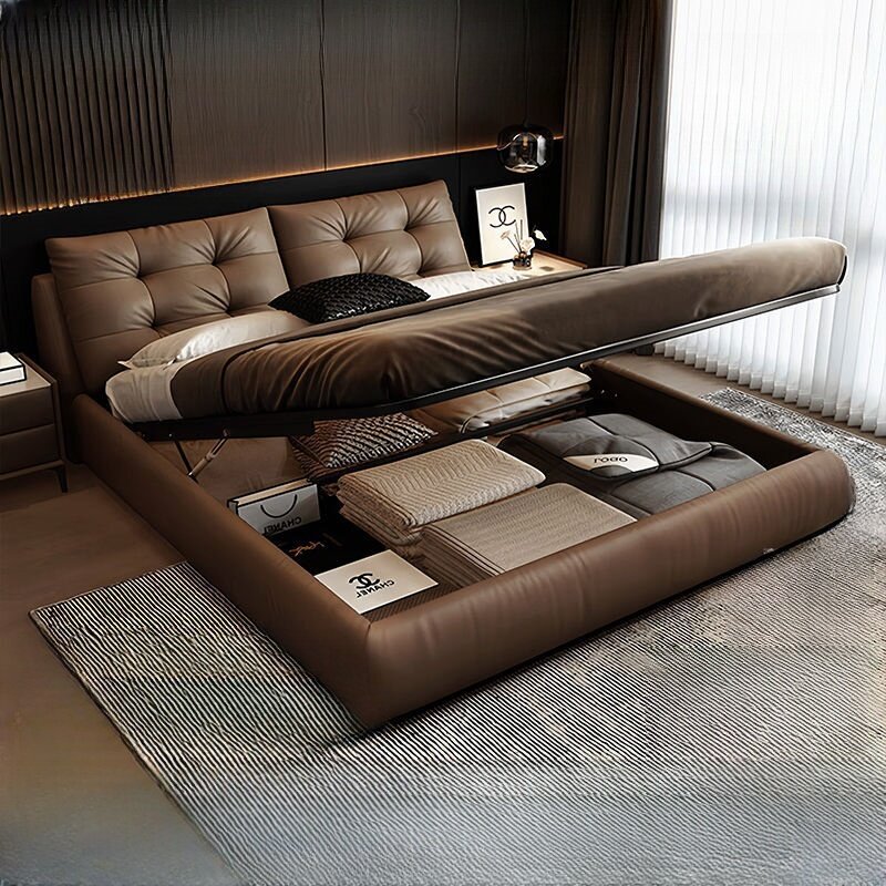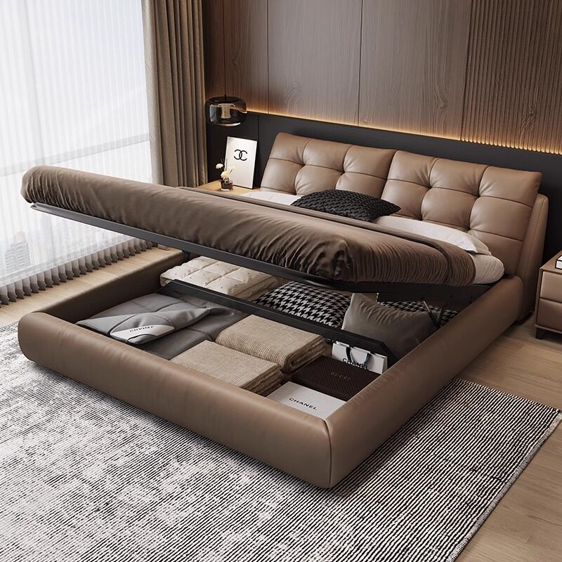 金可儿意式极简主卧真皮床现代简约1米8卧室双人轻奢气压高箱带储