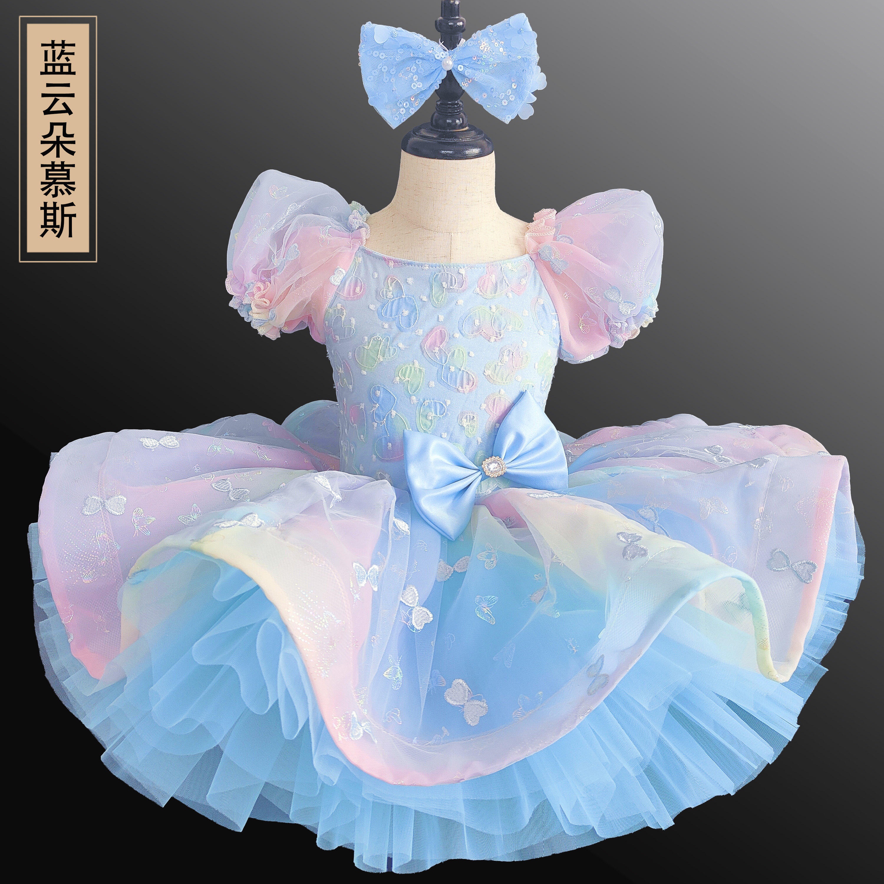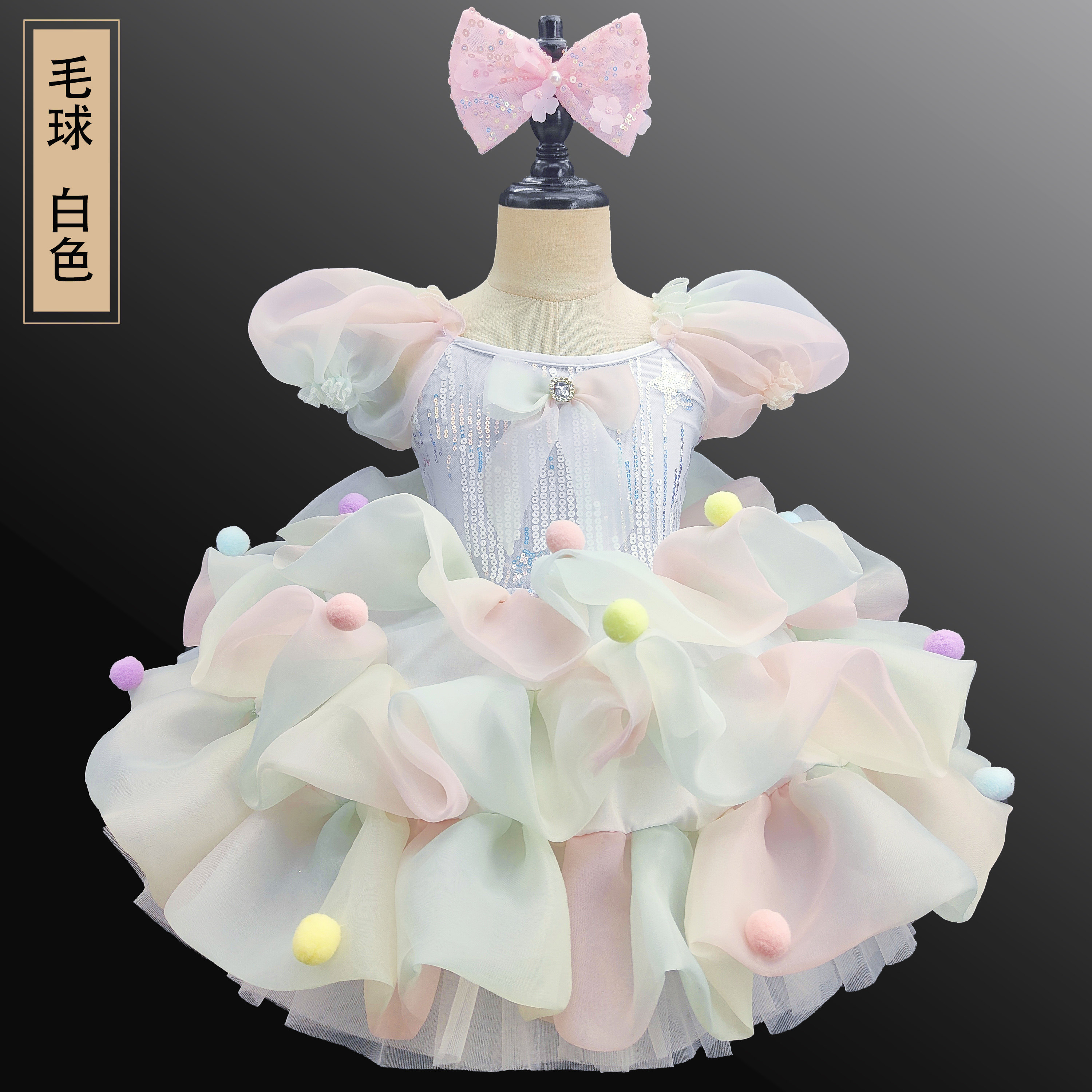 儿童蓬蓬纱裙女童七彩纱亮片演出服芭蕾舞裙合唱公主裙礼服表演服