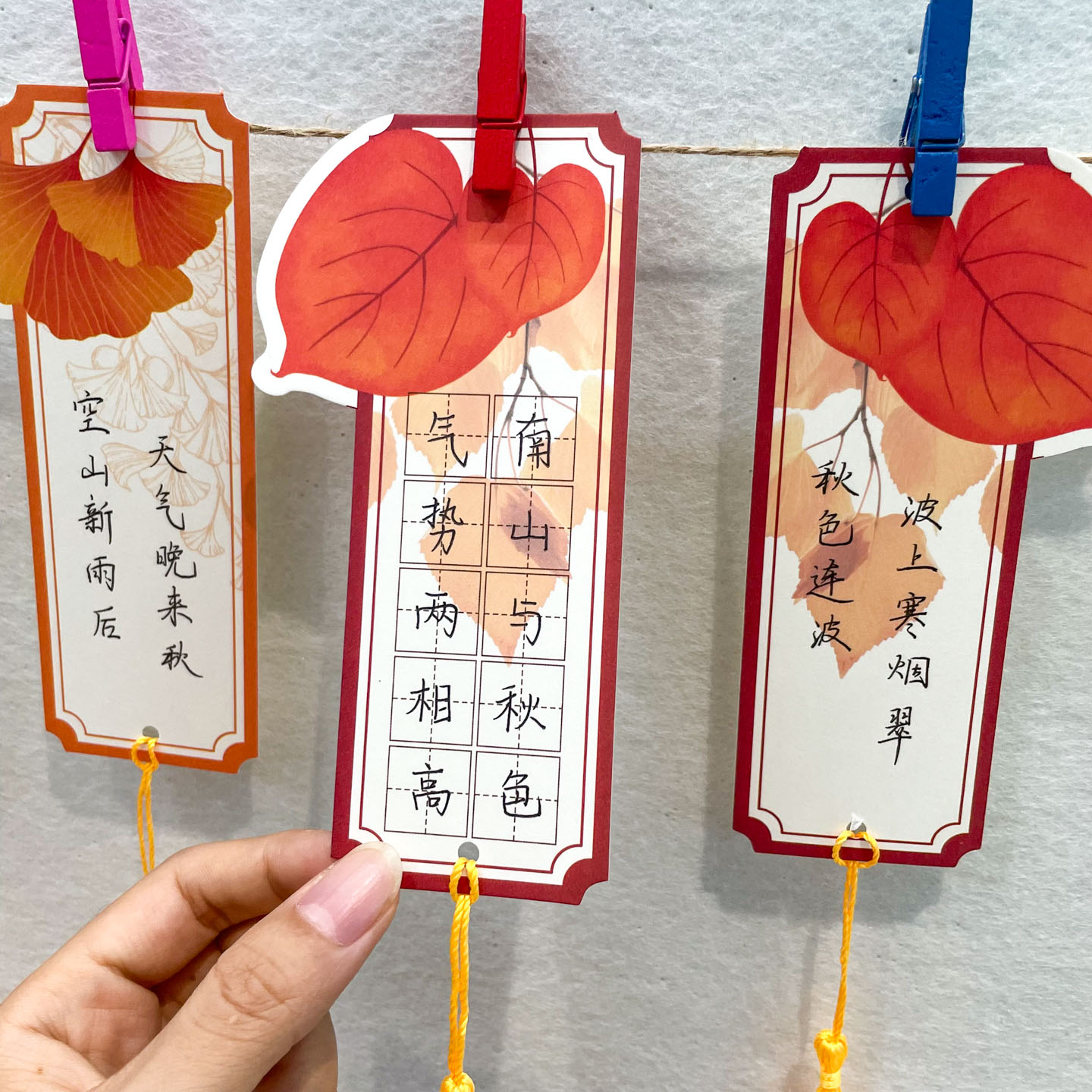 一叶知秋硬笔书法作品纸展示挂卡秋天银杏枫叶创意书签加厚田字格小学生手写古诗词五言钢笔练字比赛专用卡纸