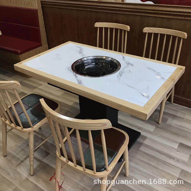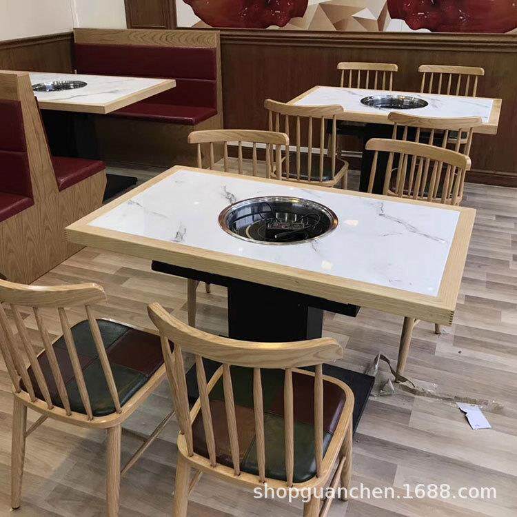 商用火锅店桌椅餐厅饭店实木包边大理石主题餐饮店成套餐桌椅家具