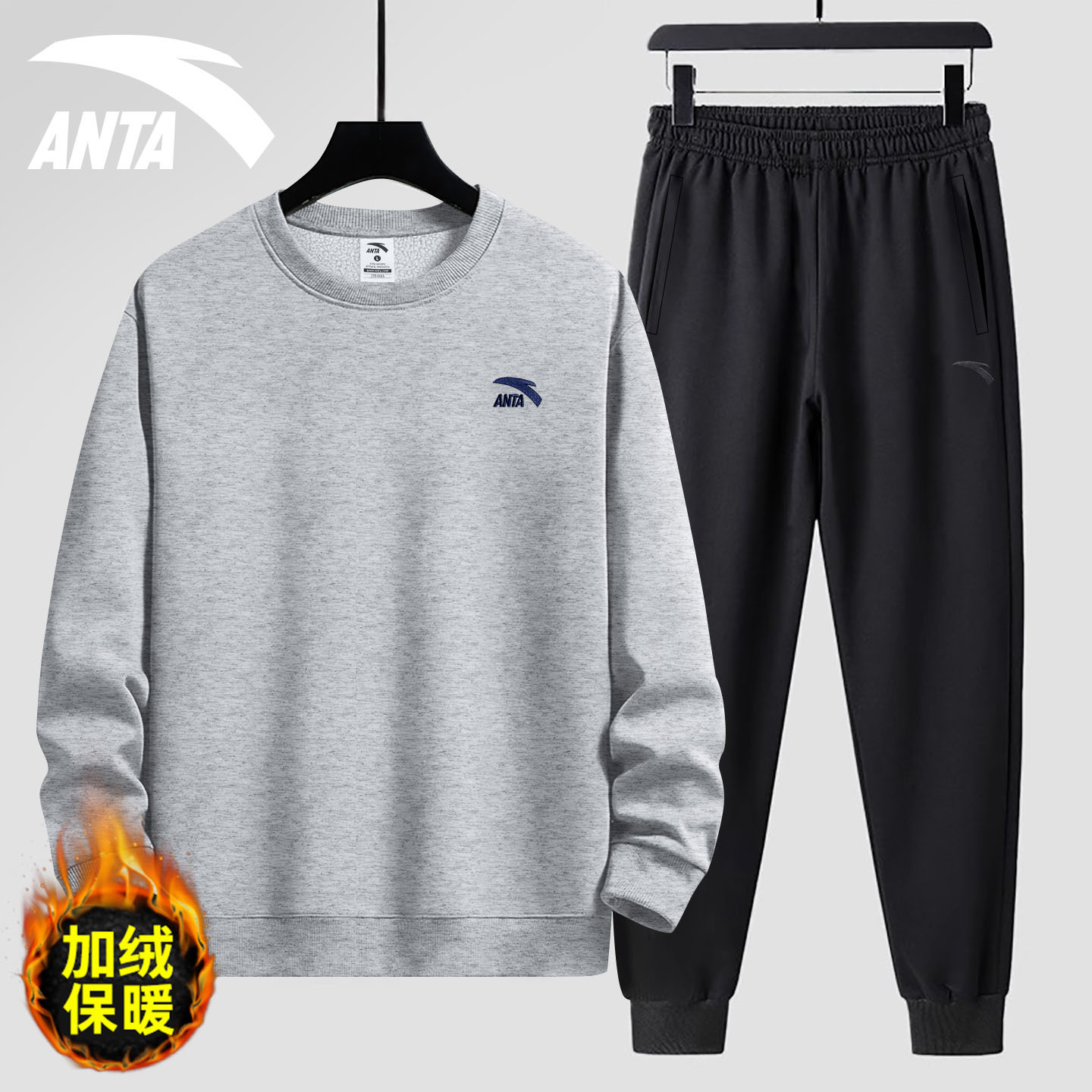 安踏运动套装男士秋冬季加绒加厚保暖卫衣卫裤长裤宽松休闲两件套