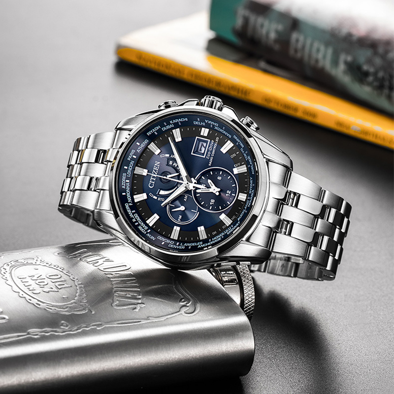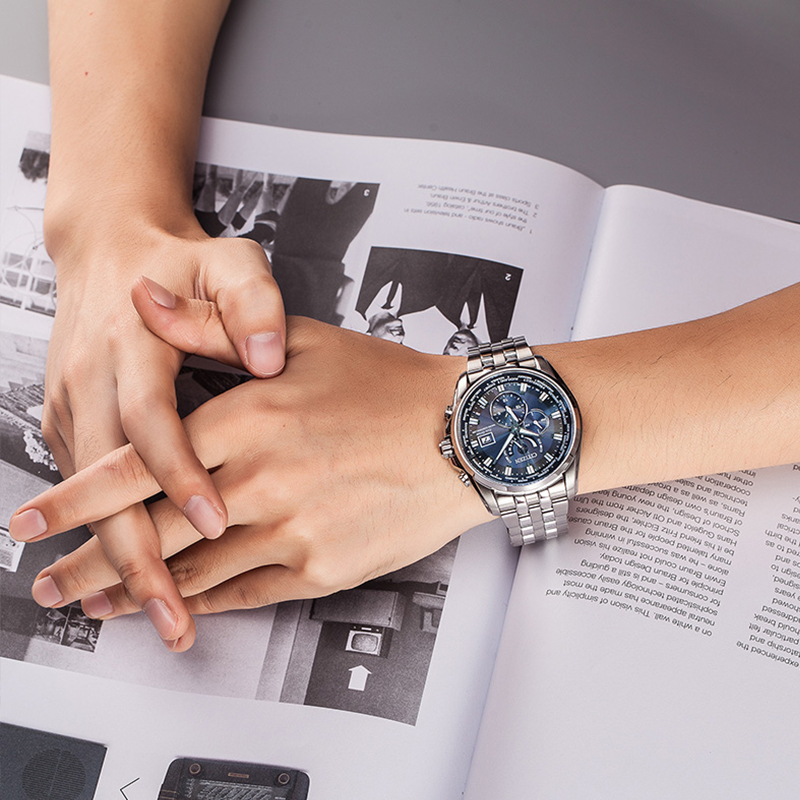 Citizen西铁城光动能商务多局电波钢带男士腕表AT9031-52L