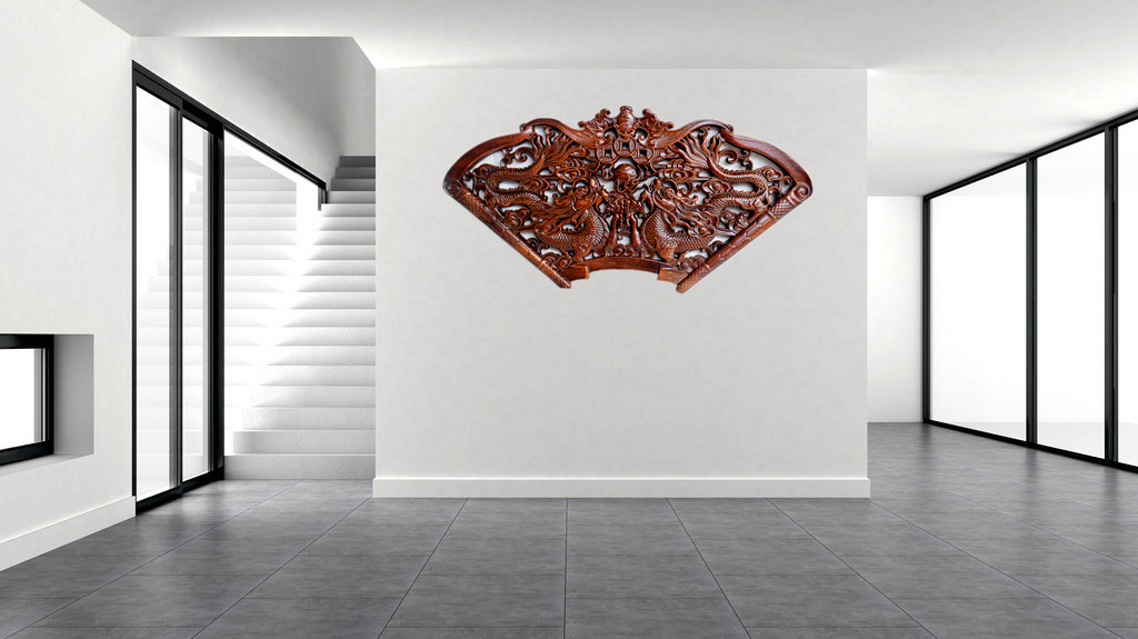 东阳实木雕刻镂空花格中式仿古装饰画福字挂件中国结扇形客厅壁饰
