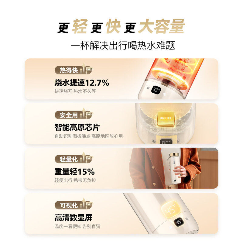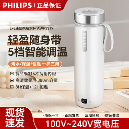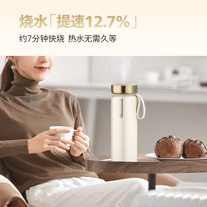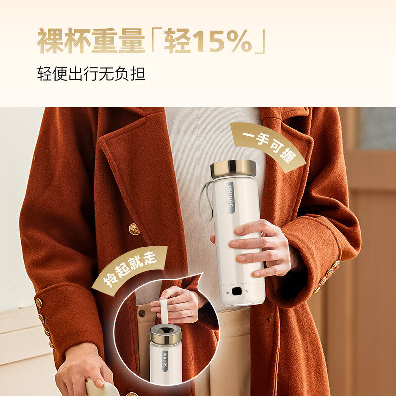 飞利浦烧水杯便携式烧水壶出差旅行电加热水杯316不锈钢保温杯子