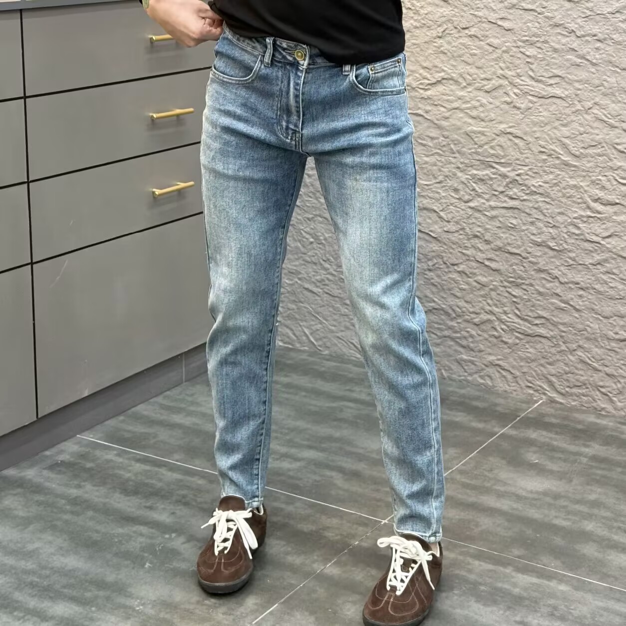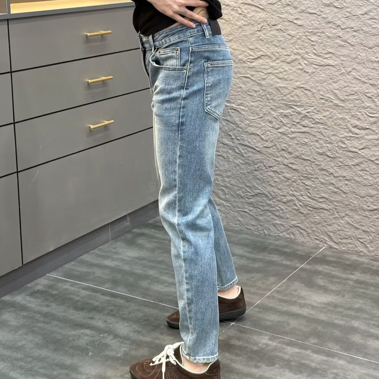 高端百搭牛仔裤男修身小直筒2025春季新款潮流五代款蓝色小脚长裤