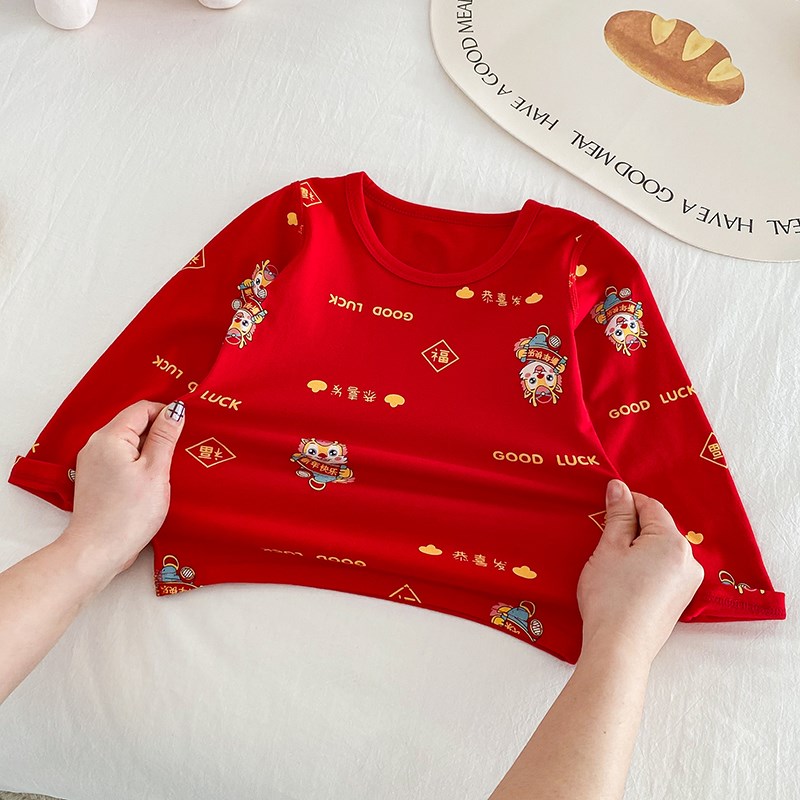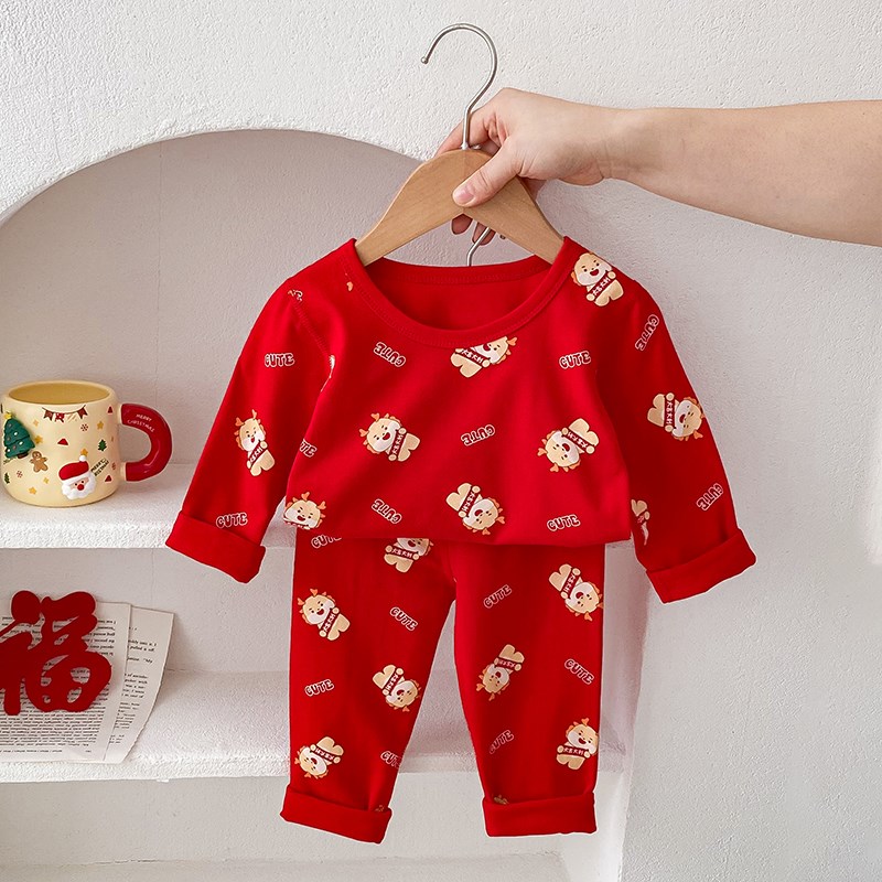 婴儿童本命年秋衣秋裤大红色内衣龙年服莱卡棉套装男童女宝宝睡衣