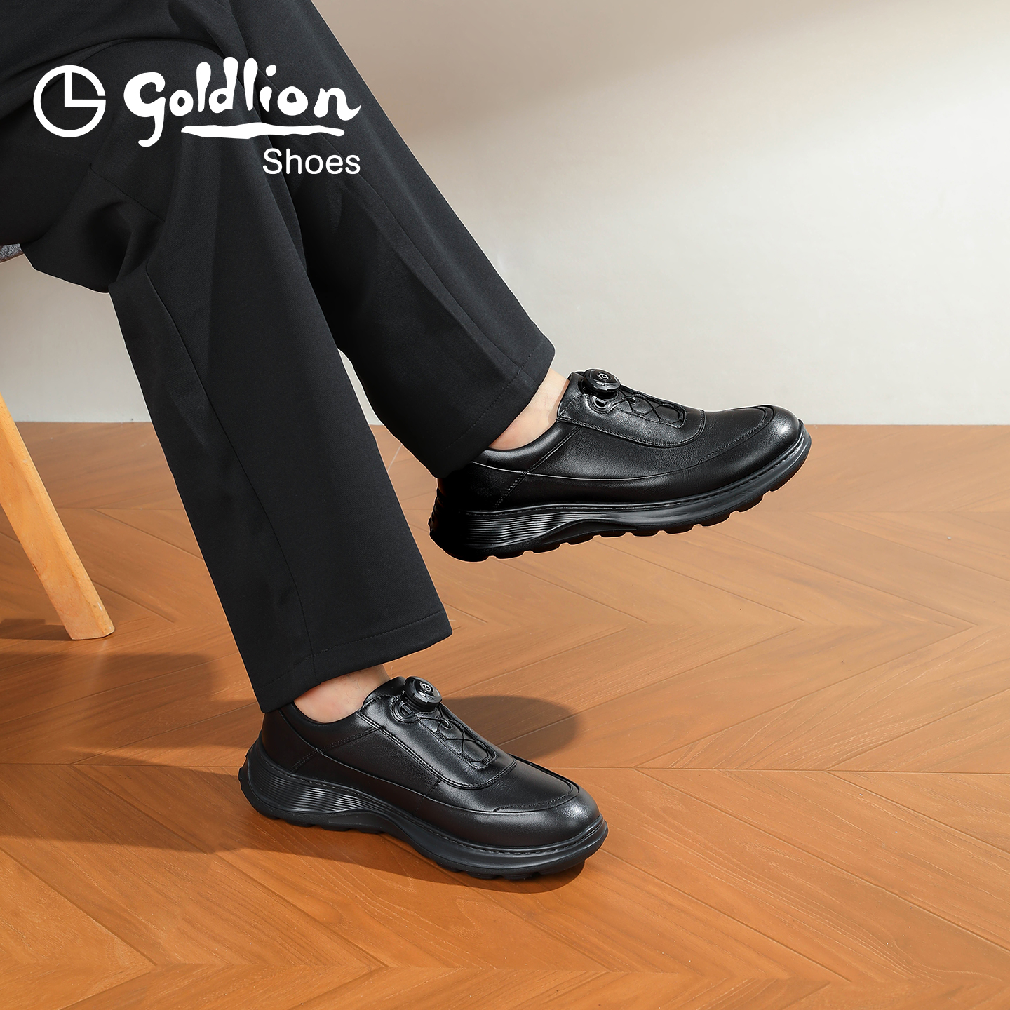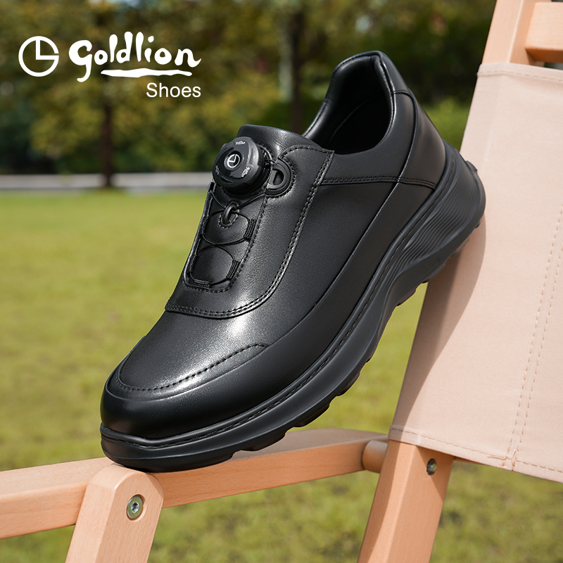 Goldlion男鞋官方正品2025秋季新款黑色休闲鞋男士皮鞋大码运动鞋