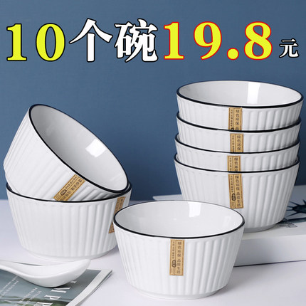 10个碗19.8元日式家用陶瓷米饭碗创意北欧风泡面碗汤碗吃饭碗简约