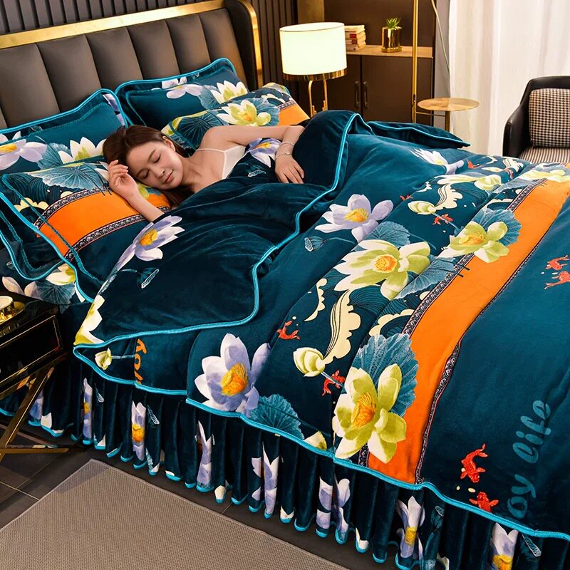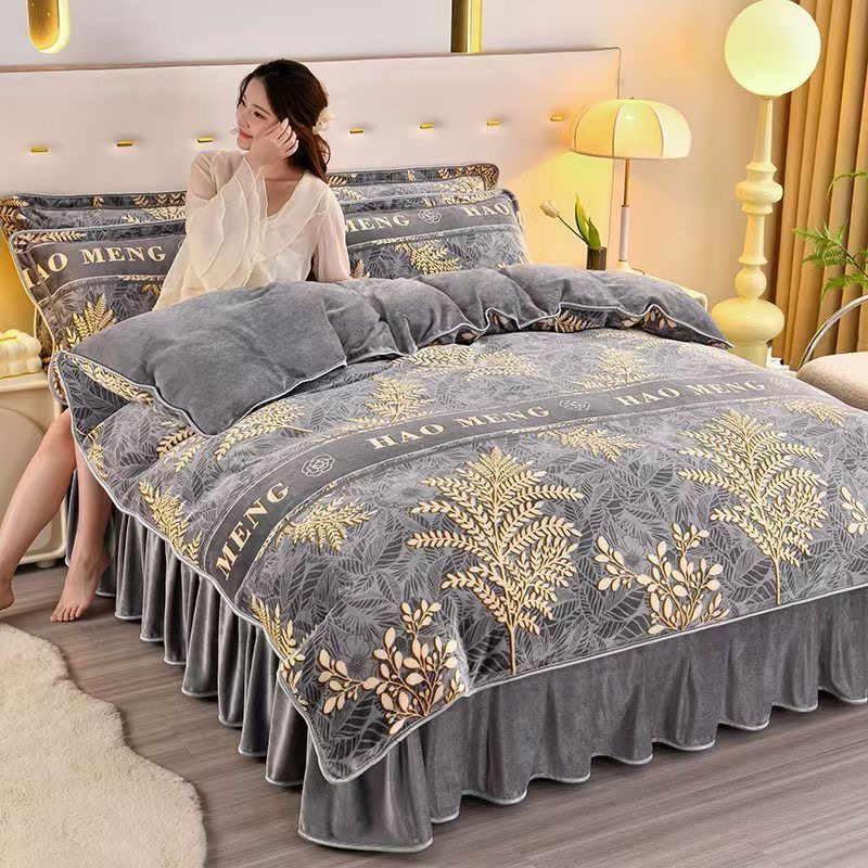 加厚牛奶绒四件套冬季双面珊瑚绒被套床品加绒法兰绒床上冬天床裙