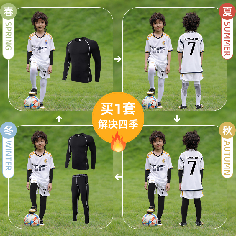 秋冬儿童足球服皇马C罗7阿根廷梅西男中小学生孩训练队服套装定制