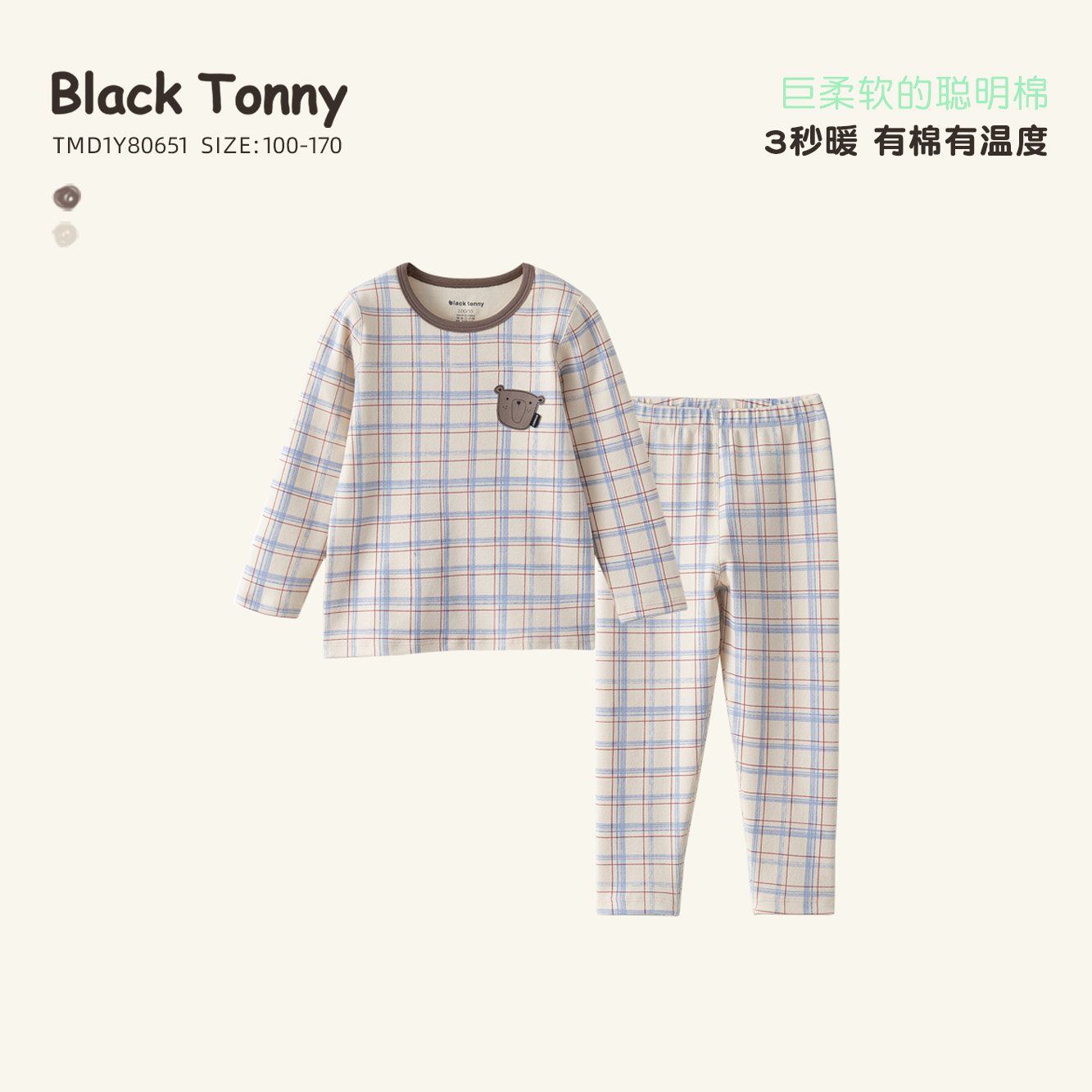 2024小黑托昵尼儿童纯棉内衣套装冬款男童秋衣裤磨毛保暖内衣中厚