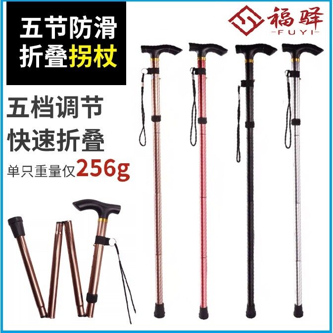 福驿5折叠登山杖伸缩折叠拐杖超轻便折叠拐棍防滑老人拐杖手杖