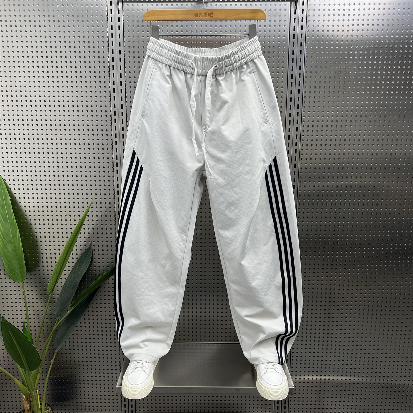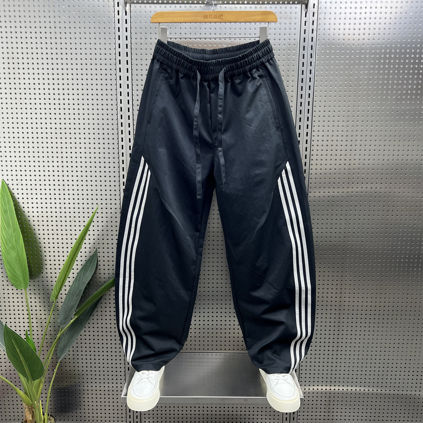时尚潮流条纹百搭直筒休闲裤男士2025秋冬新款潮牌青年阔腿运动裤